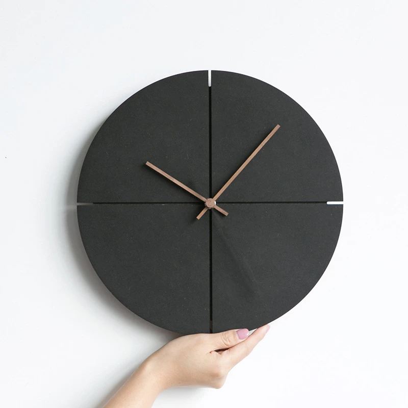 1Pcs Wooden Wall Clock Nordic Minimalist Living Room Kitchen Personality Household Black Mute Wall Clock Home Decoration