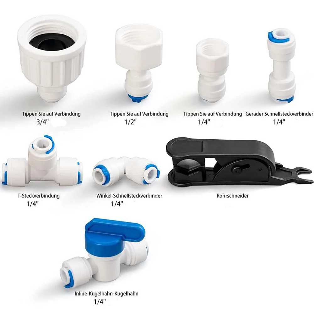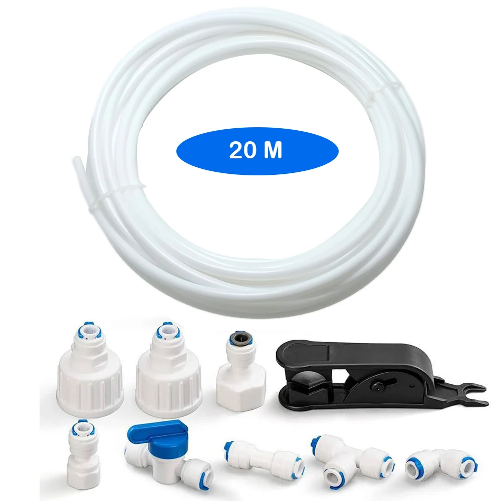 1/4" O.D. RO Water Filter Tube Fitting 20M Tube+Plastic Push Fit Quick Connect for Water Lines Fridge/Ice Maker Installation Kit
