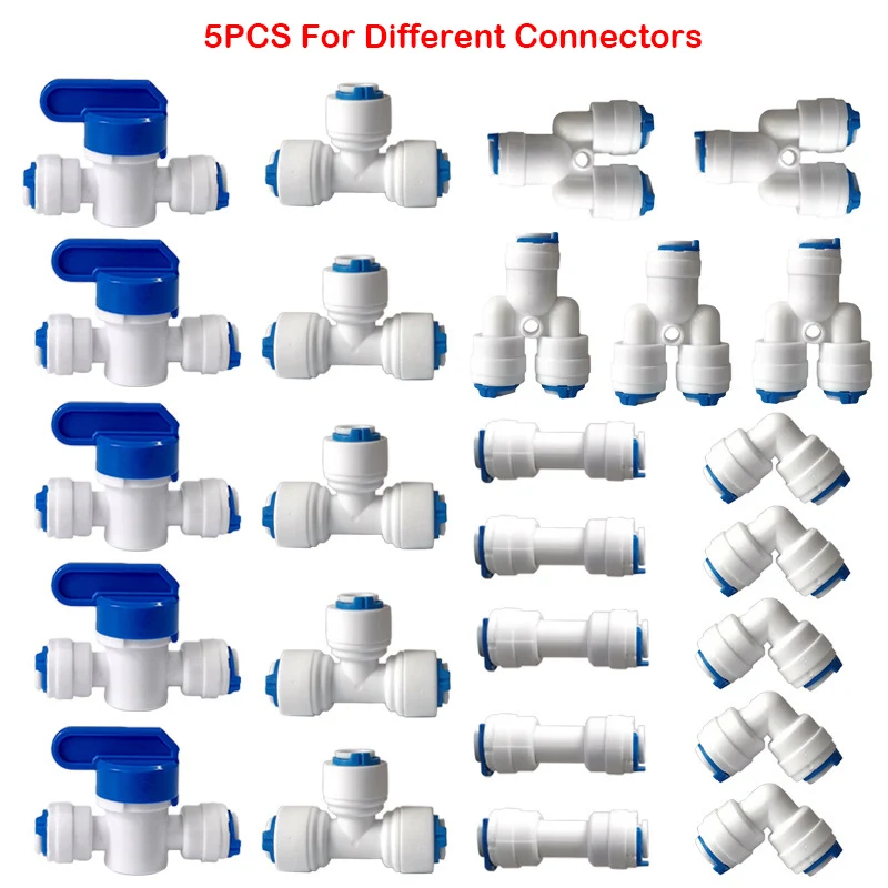 Reverse Osmosis Quick Coupling 1/4" Tee Y Connector 2 Way Equal Elbow Straight Check Valve RO Water Filter Plastic Pipe Fittings