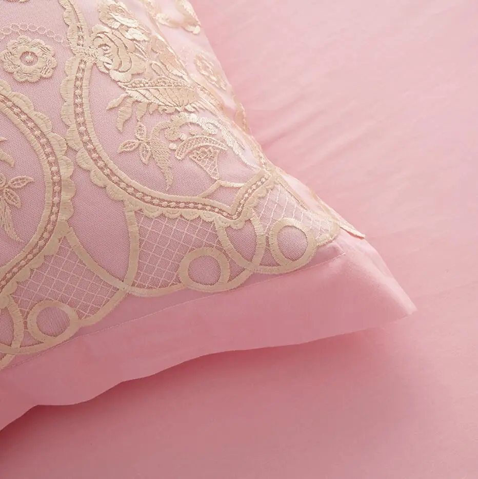 100% Cotton 200cm 220cm Round Bed 4 PCS Active Print Embroidery Lace Edge Pillowcase & Duvet Cover Fitted Sheet Sets
