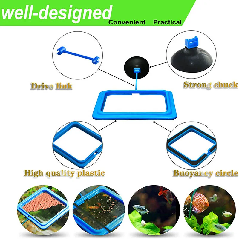 1pcs Aquarium Feeding Ring Fish Tank Station Floating Food Tray Feeder Square Circle Accessory Fish Food Feeder Suction Cup