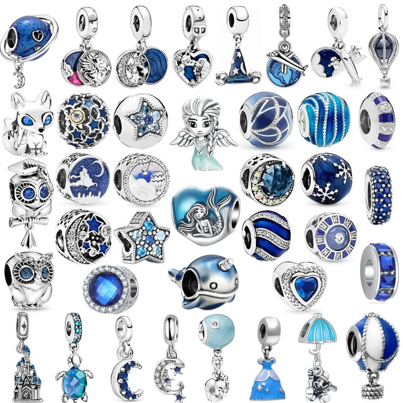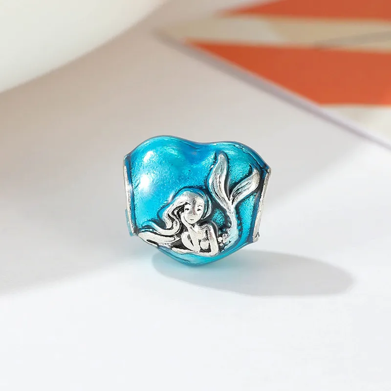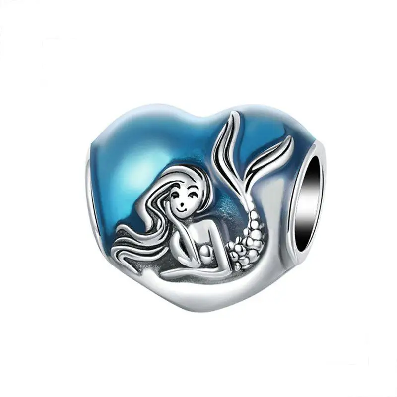 1Pcs Cute Blue Angel Mermaid Stars Moon Bead Pendant Suitable for DIY Charm Bracelet Necklace Accessory Women Jewelry Making