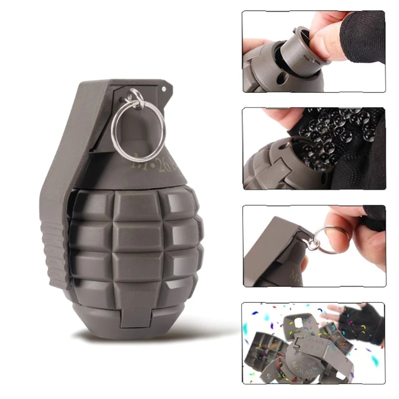 Safety Blaster: Mine grenade toy that launches the fragile water beads as a projectile, so when the water bomb is ejected, it will burst immediately after encountering obstacles,forming a pile of small fragments.