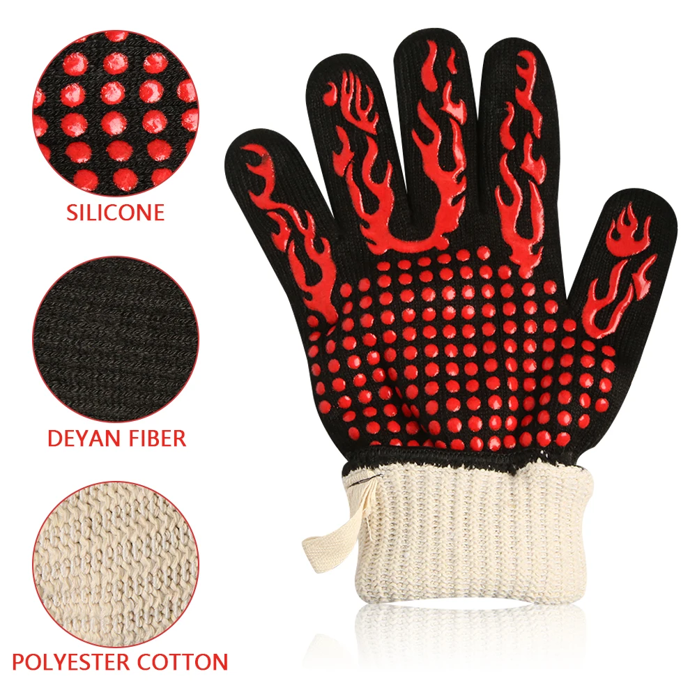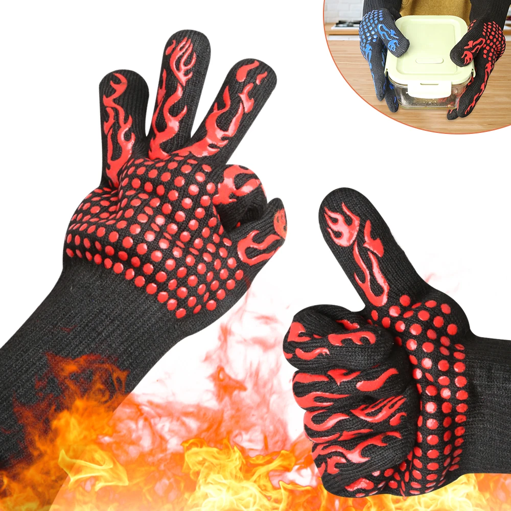 1Piece BBQ Oven Fireproof Heat Resistant Glove 800 Degree Heat Resistant Glove Microwave Heat Lnsulation Tool Silicone Oven Mitt