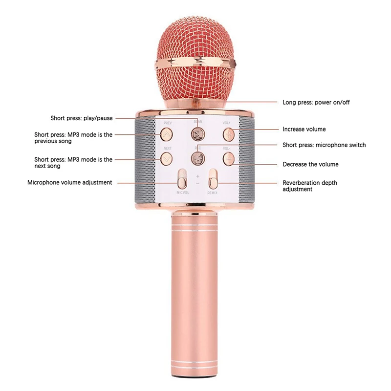 1. Support TF card power-off memory playback, it is the king of K song, it is also a Bluetooth speaker, HIFI sound quality, plug and play, can control songs, while practicing at home alone like Karao Mike , you can feel the atmosphere of karaoke.