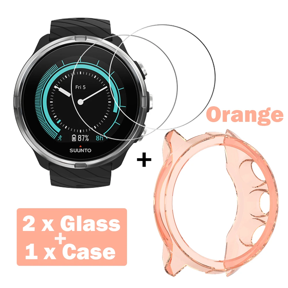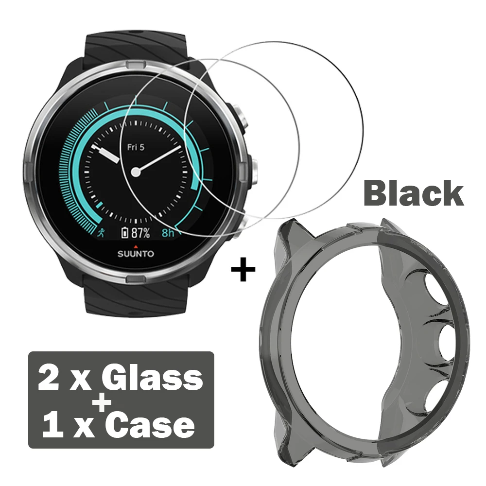2+1 Protector Case + Screen Protector Film for Suunto 9 smart watch Soft TPU Protective Case Cover Shell Tempered Glass Film