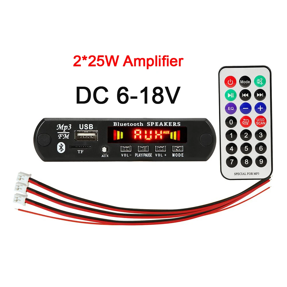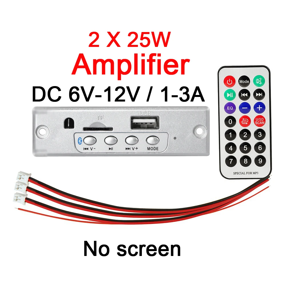 2*25W Amplifier MP3 Bluetooth Decoder 6-18V 50W Amplifier Car FM Radio Module Support TF USB AUX folder playback Decoding board