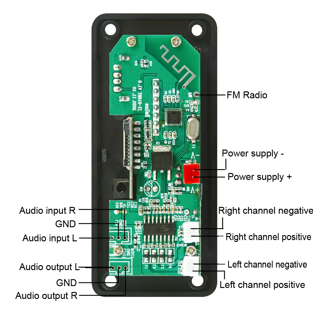 Support function introduction: support MP3 / USB / TF / LINE IN / FM / BLUETOOTH / remote control / DC: 5V-12V