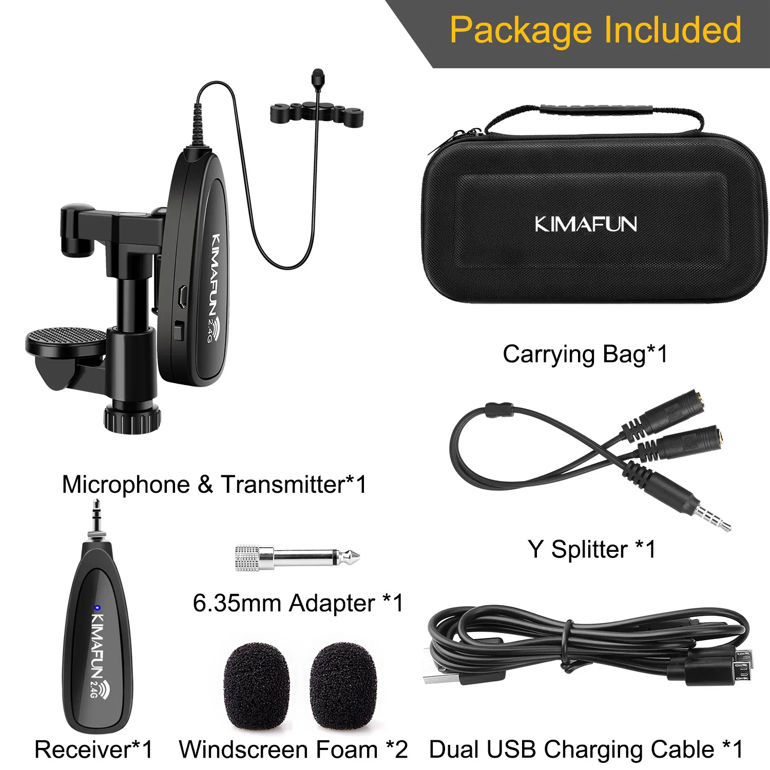 2.4G wireless microphone with a free 3.5mm to 6.35mm adapter can be used with voice amplifier, large power speakers, portable pa system, mixer, karaoke microphone speaker system. The 3.5mm receiver is suitable for iphone, Android Phone, tablet and laptop with a free Y Splitter attached. The microphone is suitable for video/audio recording and so on.