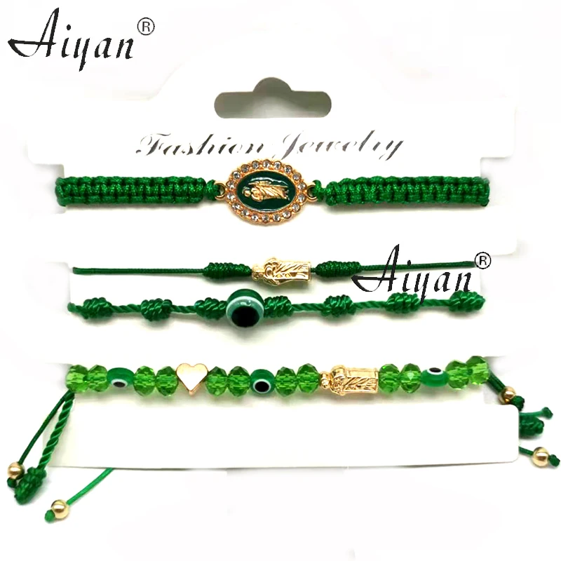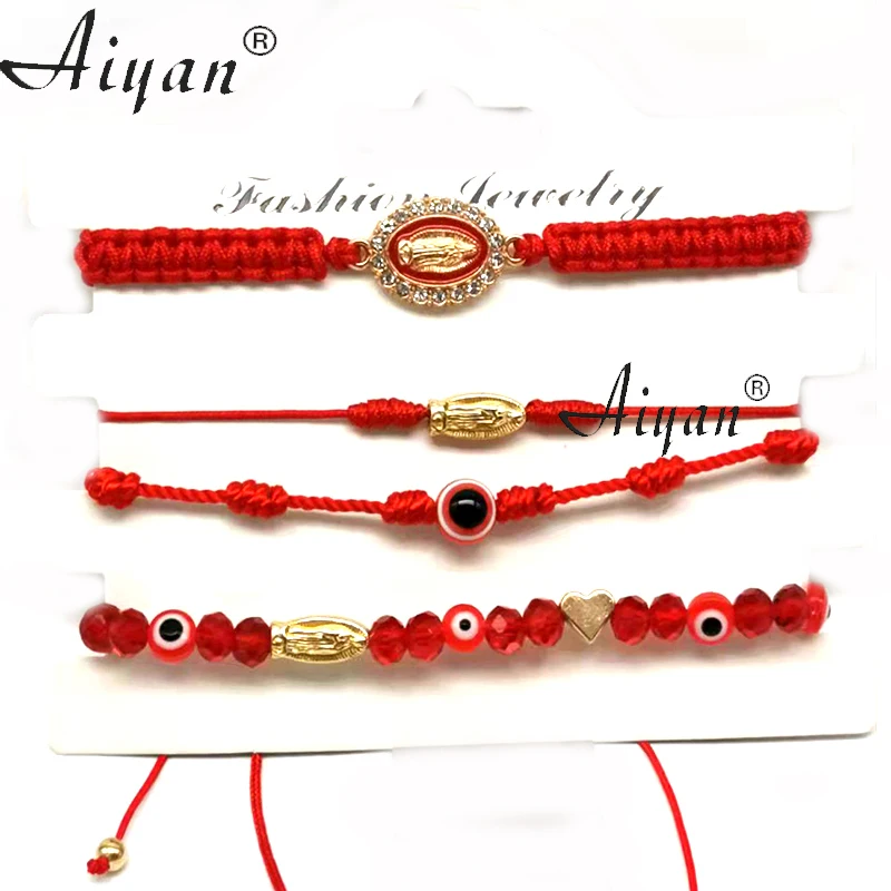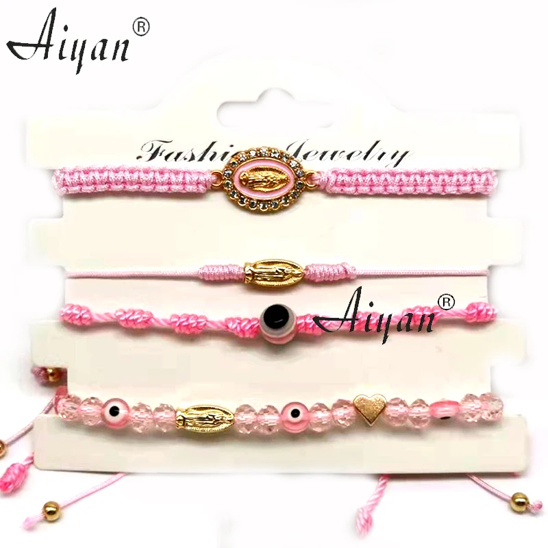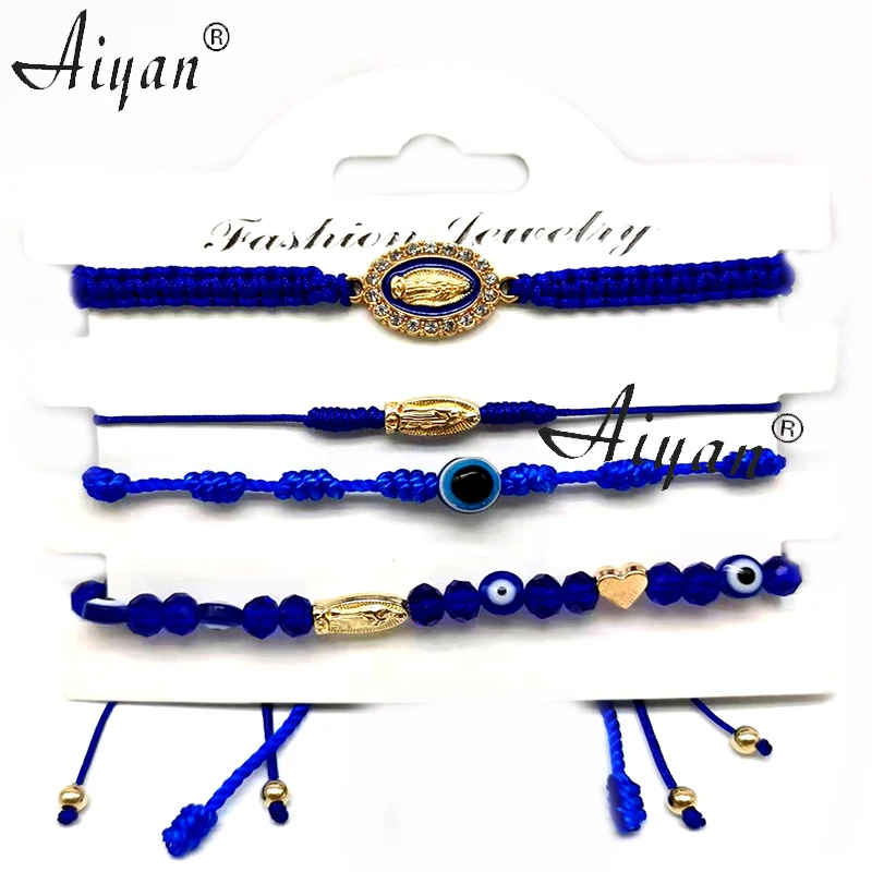 2 Card (4Pieces Bracelet 1 Card)Alloy Religious Saint Jude or Virgin Mary Braid Crystal And Eye Bracelets For Pray Or Protection