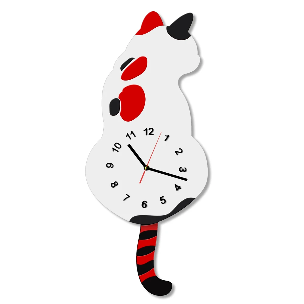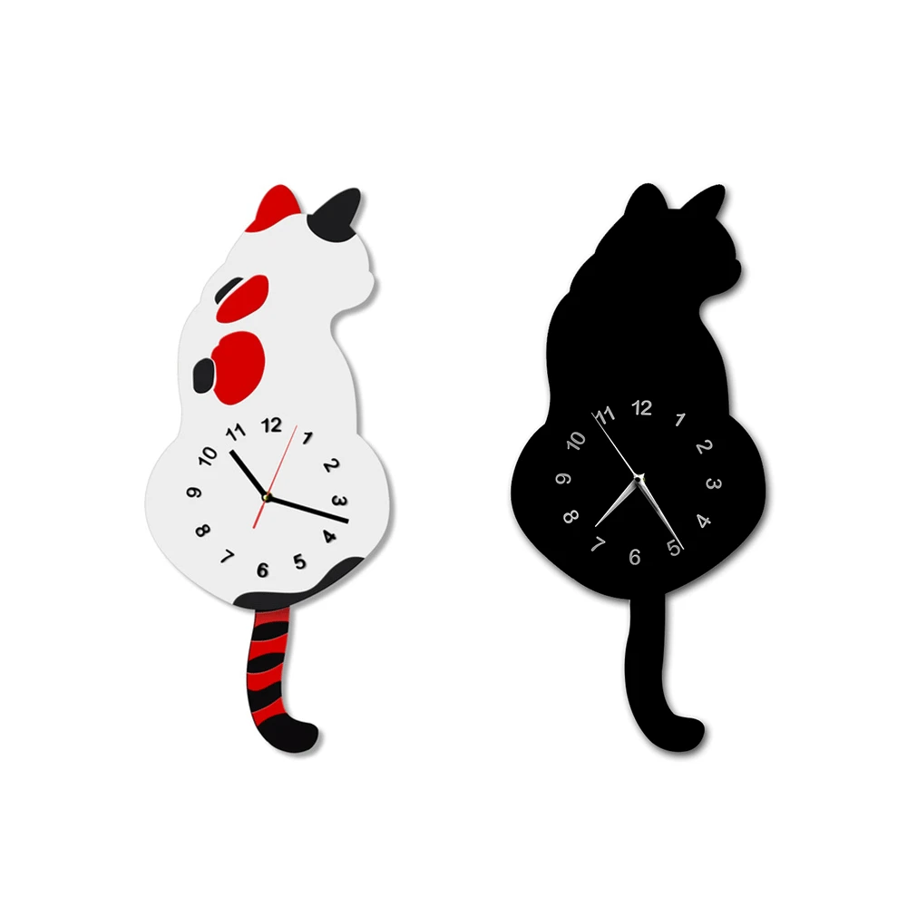 2 Colors  Japanese Adorable Cat Wall Clock with Swishing Tails Wall Watch Tail Pendulum Silhouette Cat Wag Tail Wall Clock