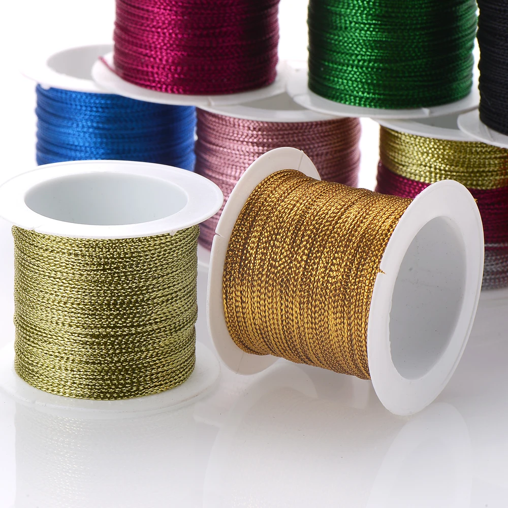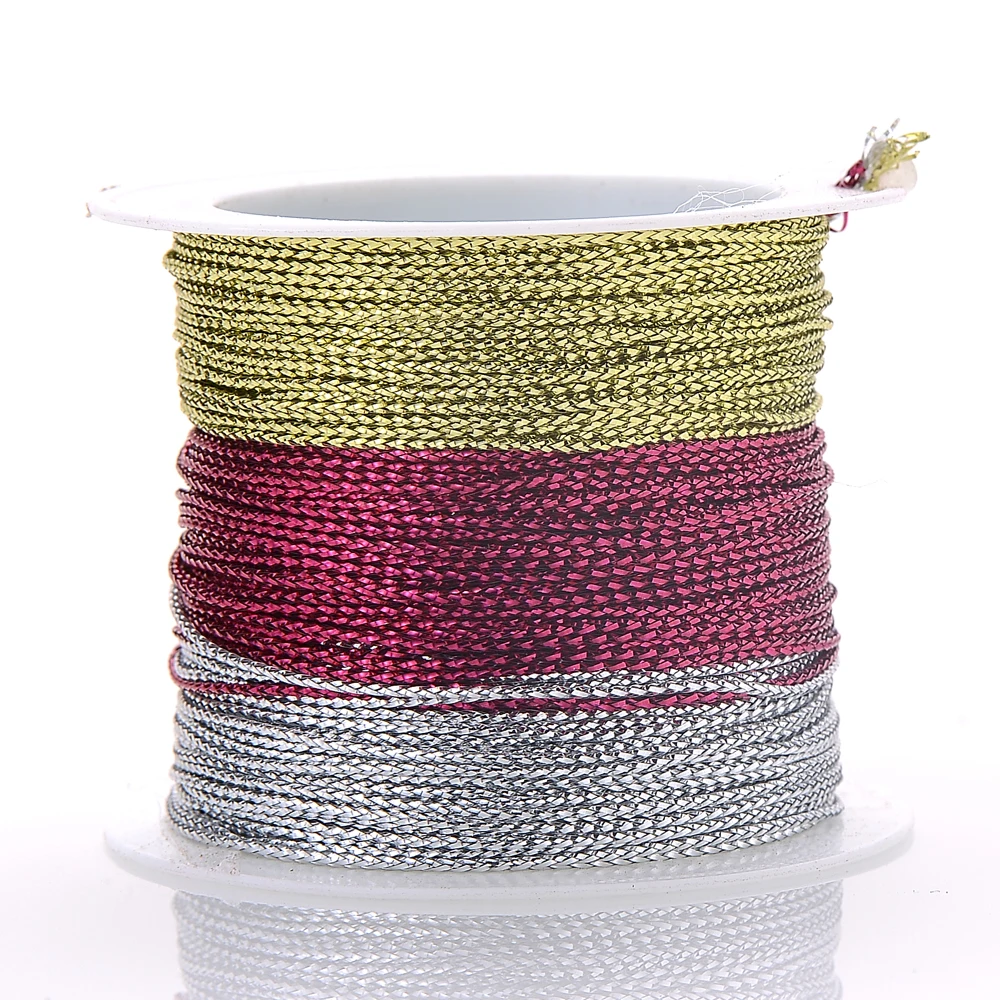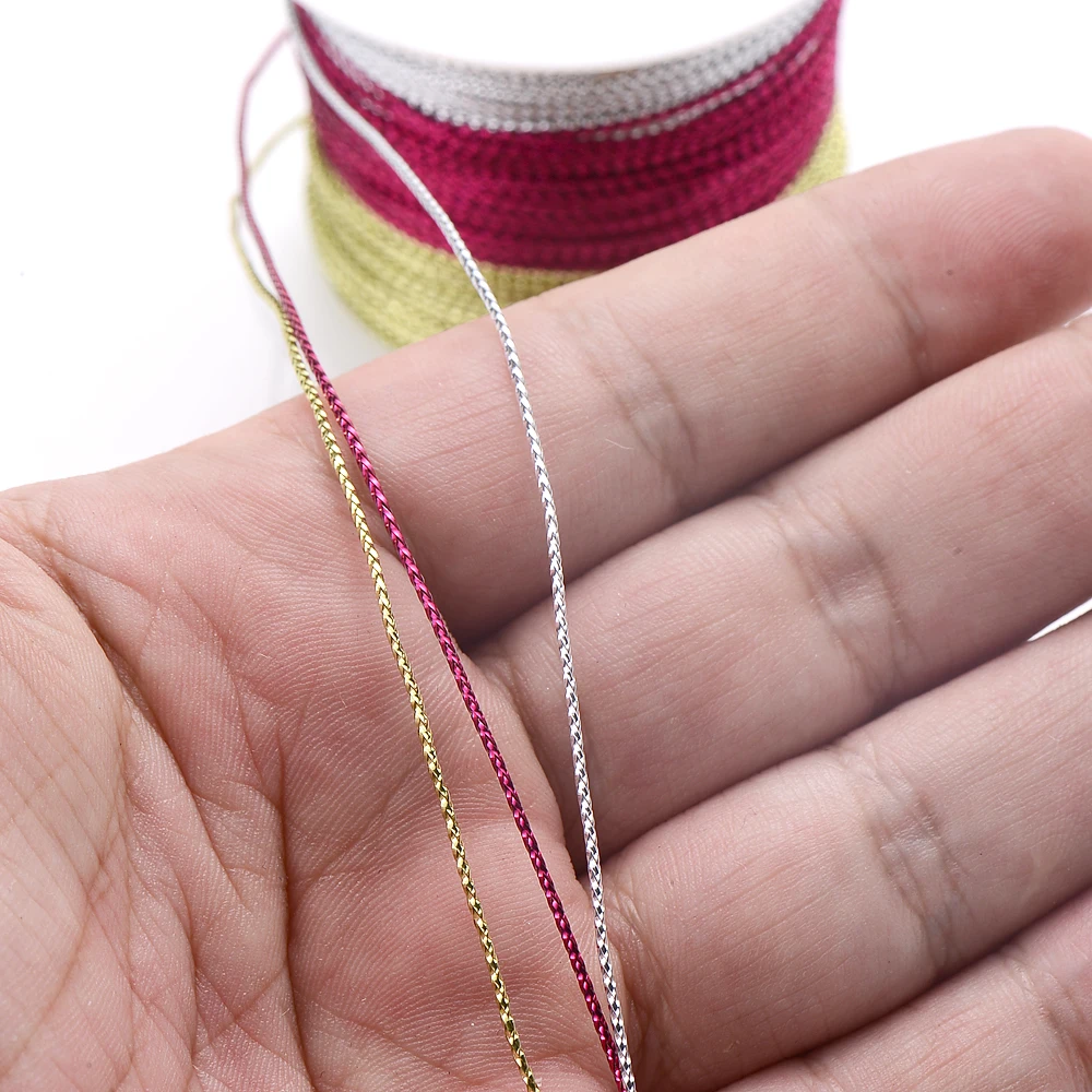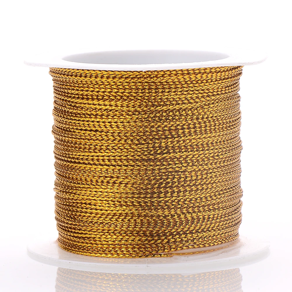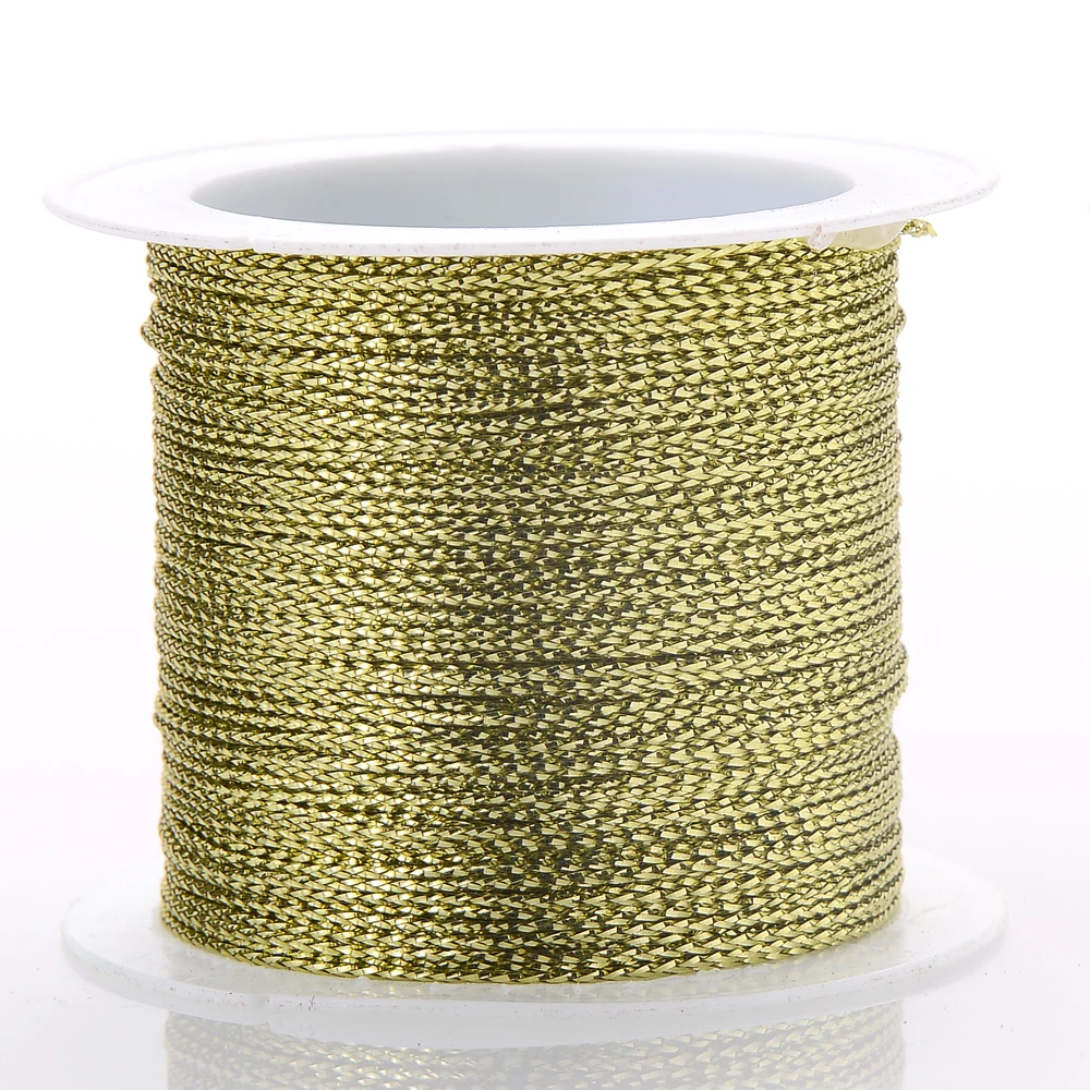 20/40/100M Gold Wire Glitter Thread Tag Rope Round Core-Spun Rope 1mm Diy Making Jewelry Craft Christmas Gift Wrapping Thread