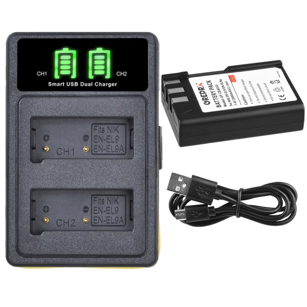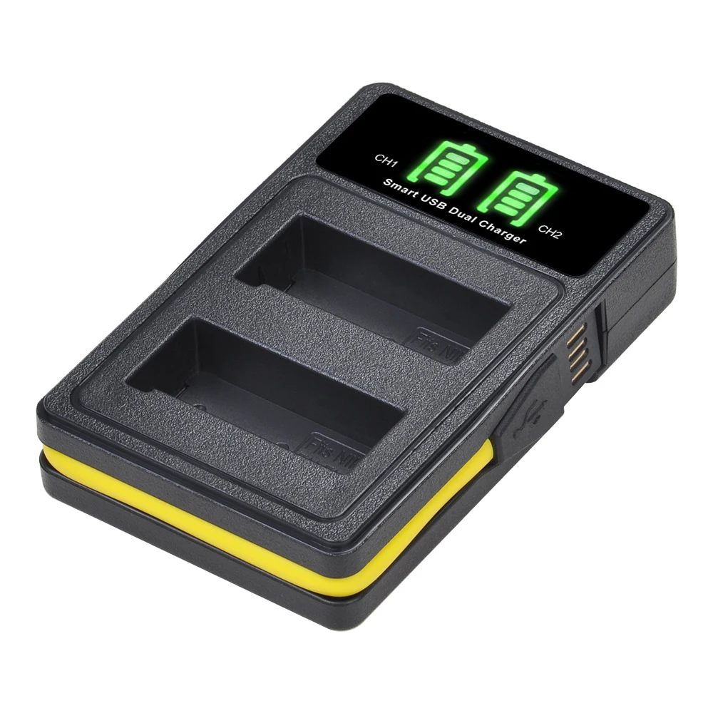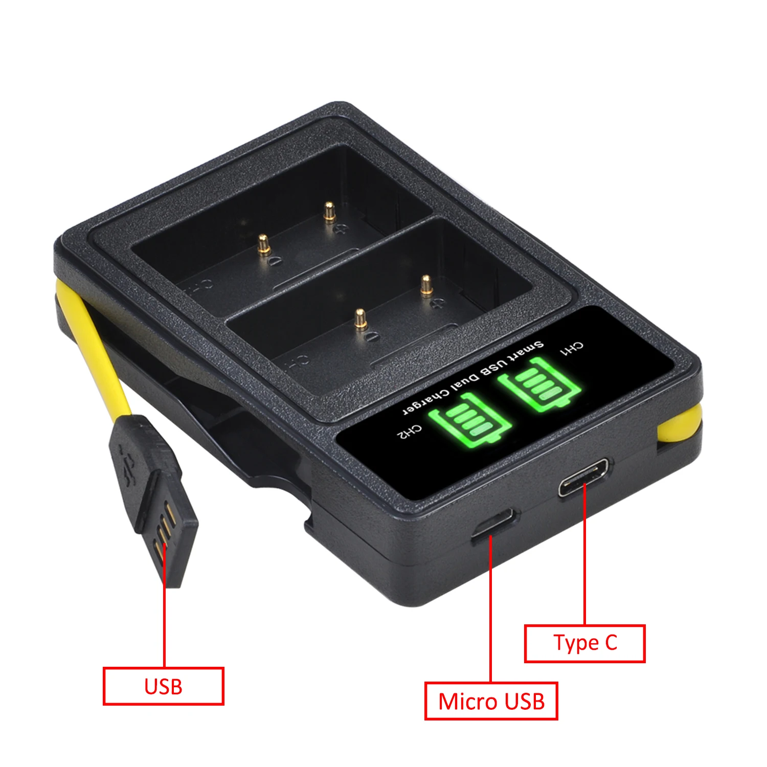 Small and light weight with a removable cord, 2 Independent charging slots can charge 2 batteries at the same time or charge one battery separately.