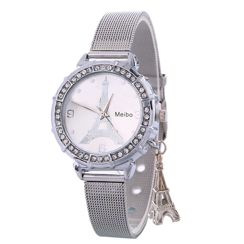 2019 New Fashion Stainless Steel Gold & Silver Band Quartz Wtach Luxury Women Rhinestone Watches Valentine clock