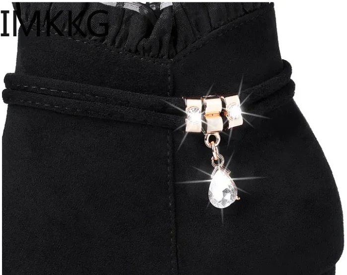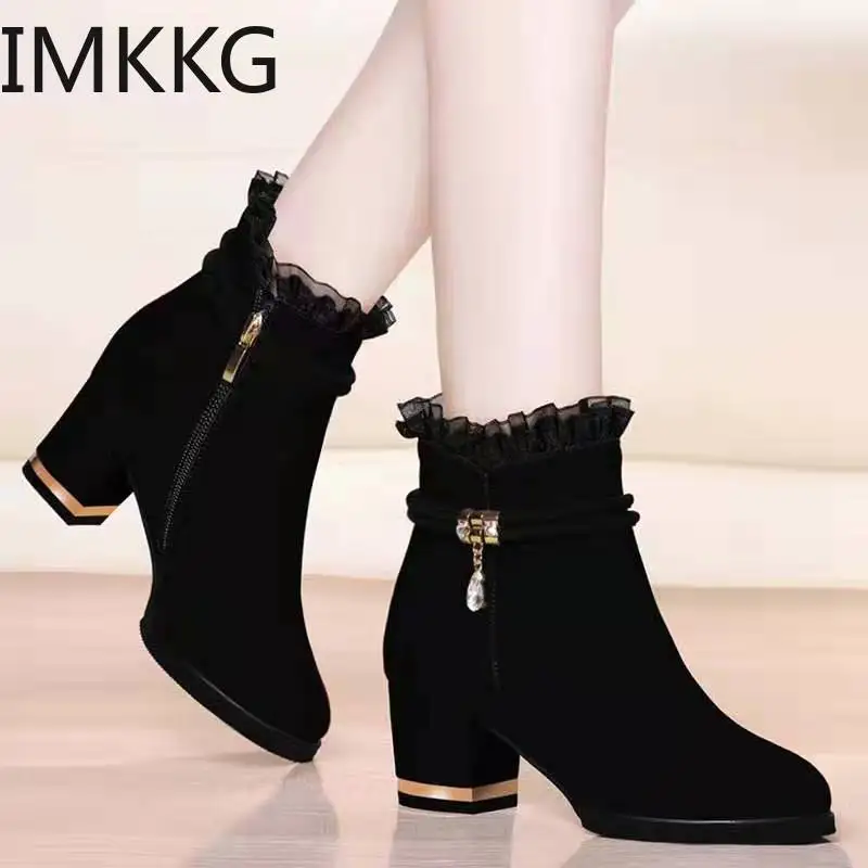 2020 new Elegant Ankle Boots Women's Lace Short Boot Lady Fashion Evening Party High Heel Shoes Suede Botas Classic Black