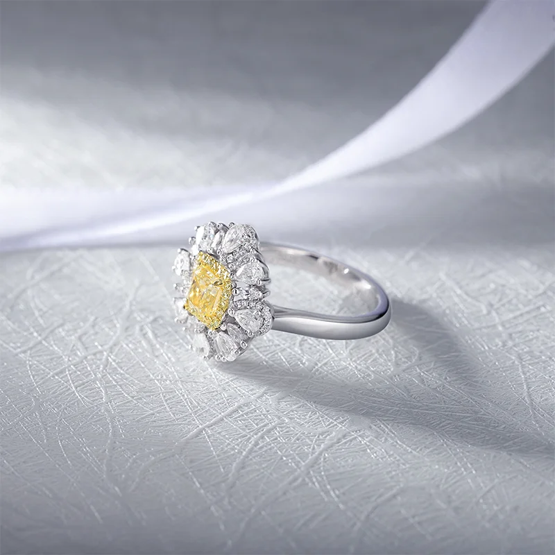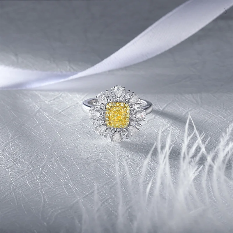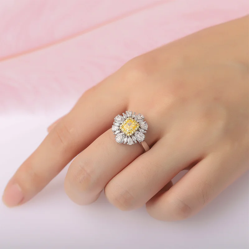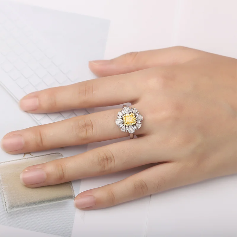 Zhanhao 2021 Rhodium Plated Radiant Cut 925 Silver Rings With 3.0ct Simulated Yellow Diamond