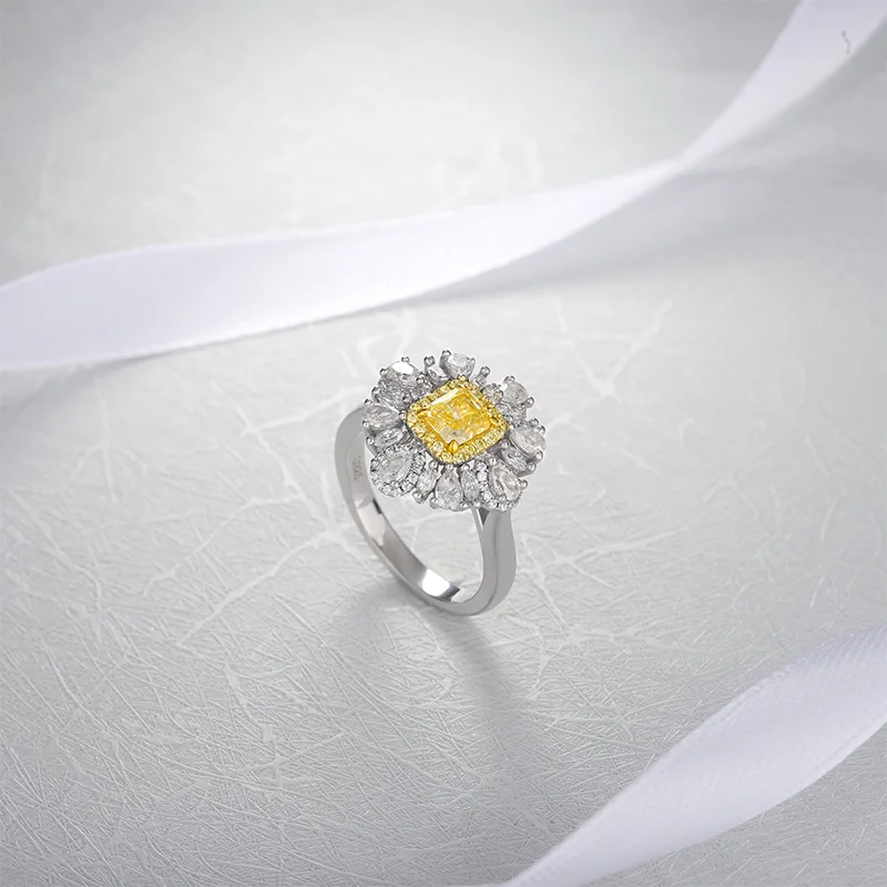 Wholesale Fashion 3.0ct Simulated Pink Yellow Diamond 925 Silver Jewelry Ring Of Radiant Cutting
