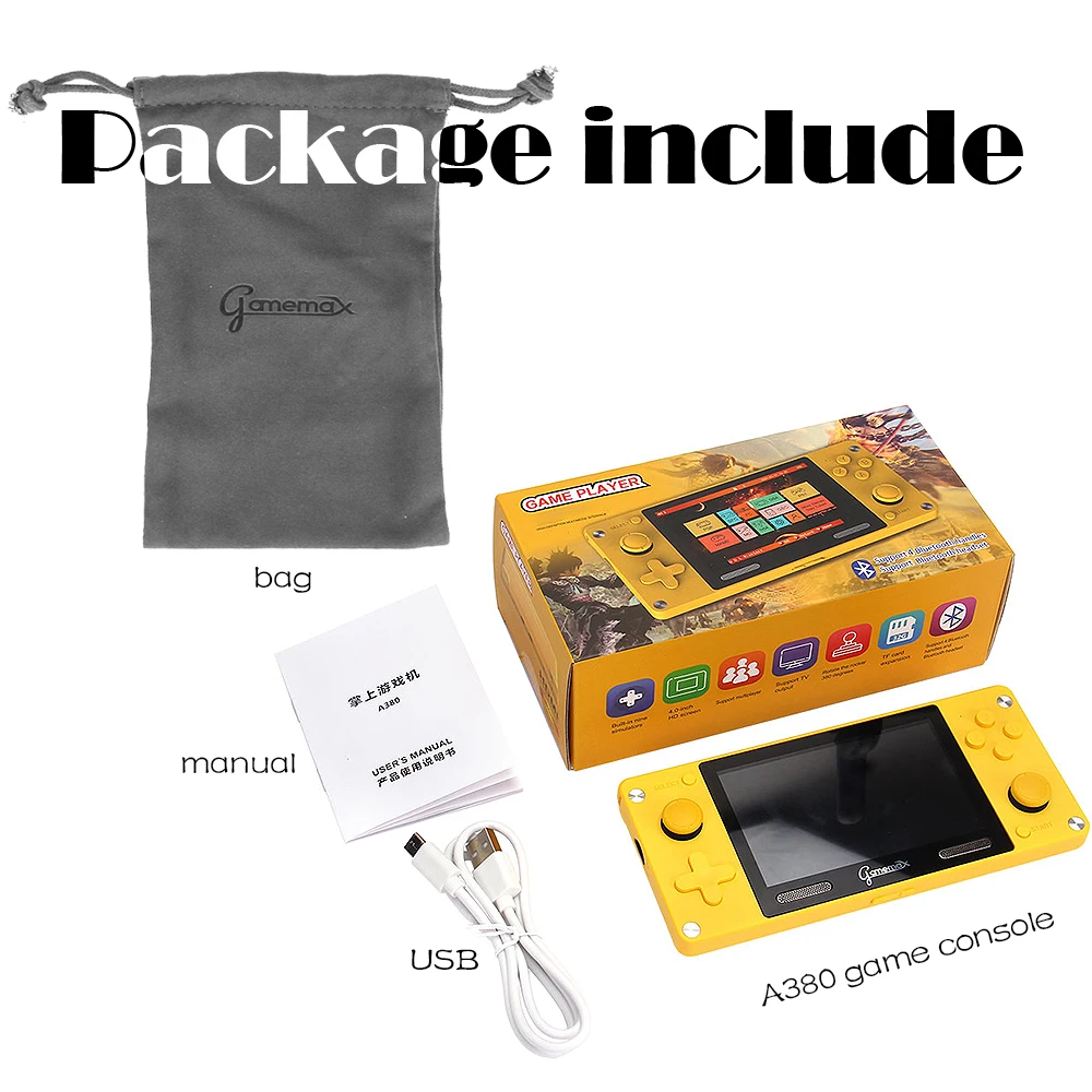 2021 A380 Retro Portable Mini Handheld joystick Console 32GB 4.0 Inch HD IPS Screen Kids Video Game Player Built-in 3600+ Games