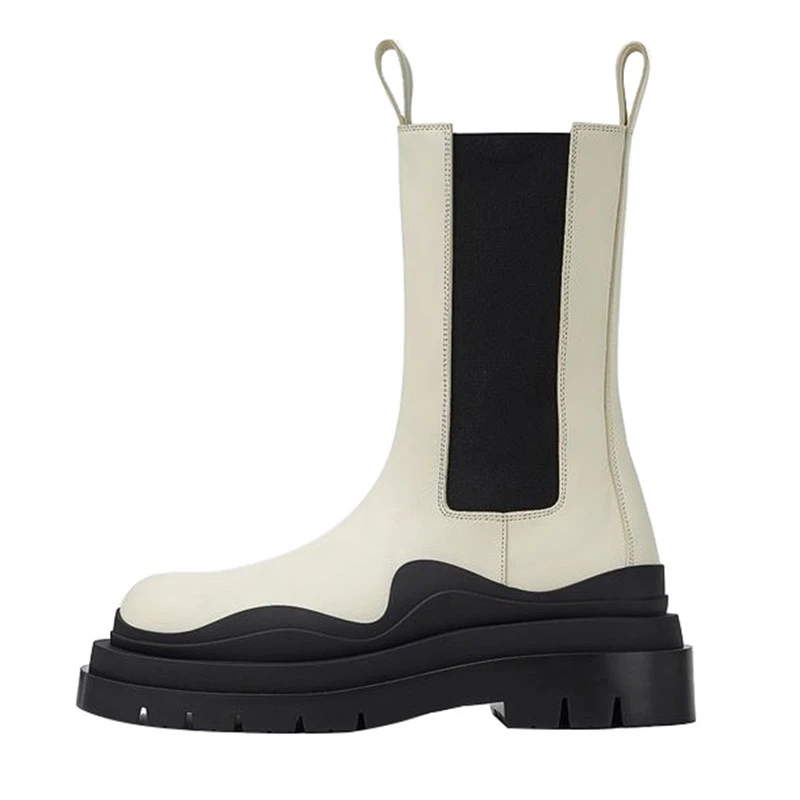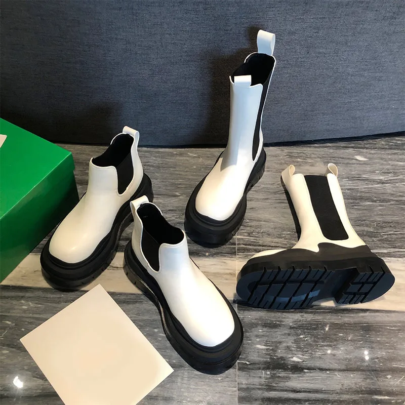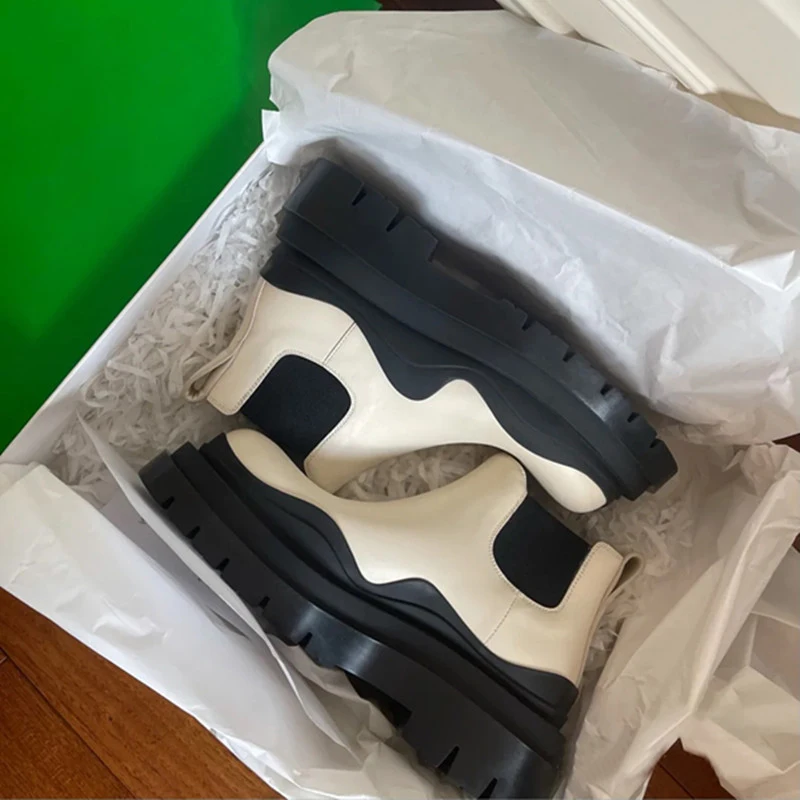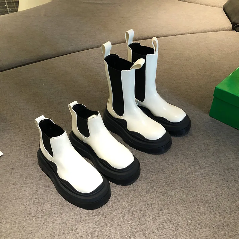 2021 Autumn Genuine Leather Women Chelsea Boots Fashion Platform Mid-Calf Boots Elastic Band Handmade Ladies White Black Botas