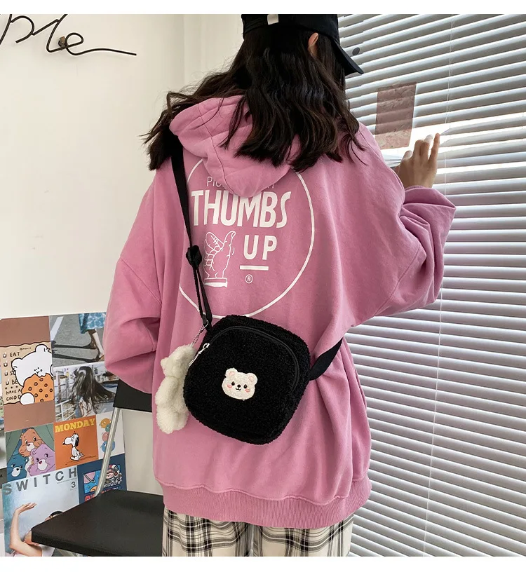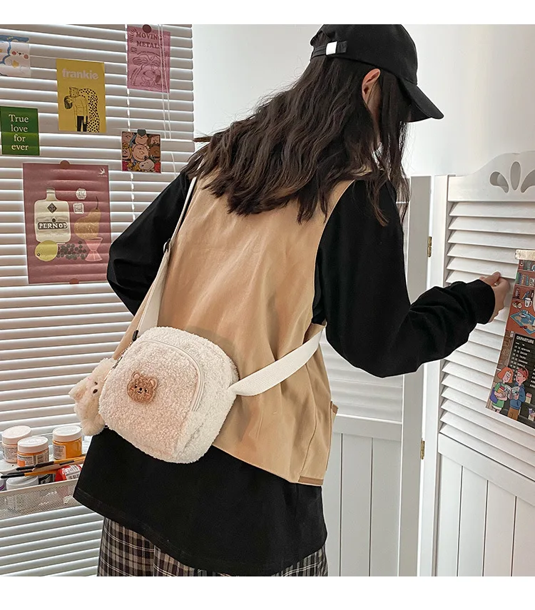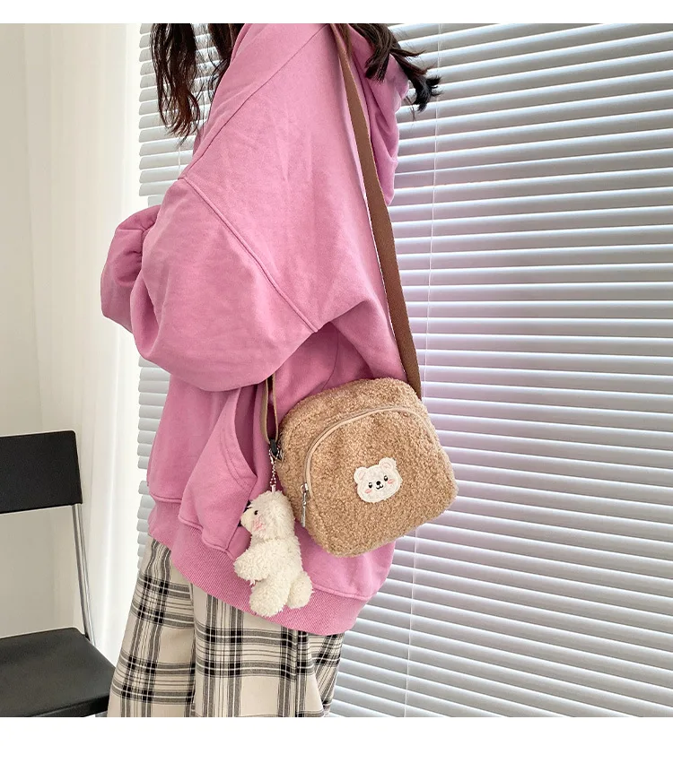 2021 Autumn Winter Cute Bear Messenger Bag Mobile Phone Bag Girls Small Kawaii Bag Women Cartoon Plush Shoulder Bag For Women