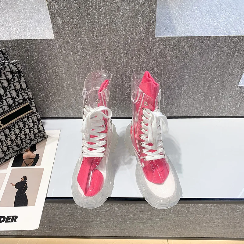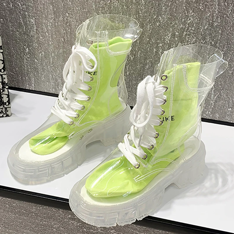 2021 Cool Fashion Women Transparent Platform Boots Waterproof Ankle Boots Feminine Clear Heel Short Boots Sexy Female Rain Shoes