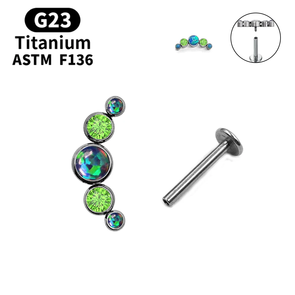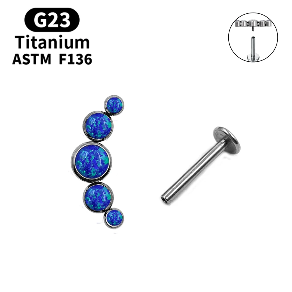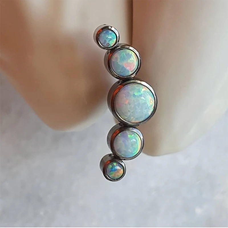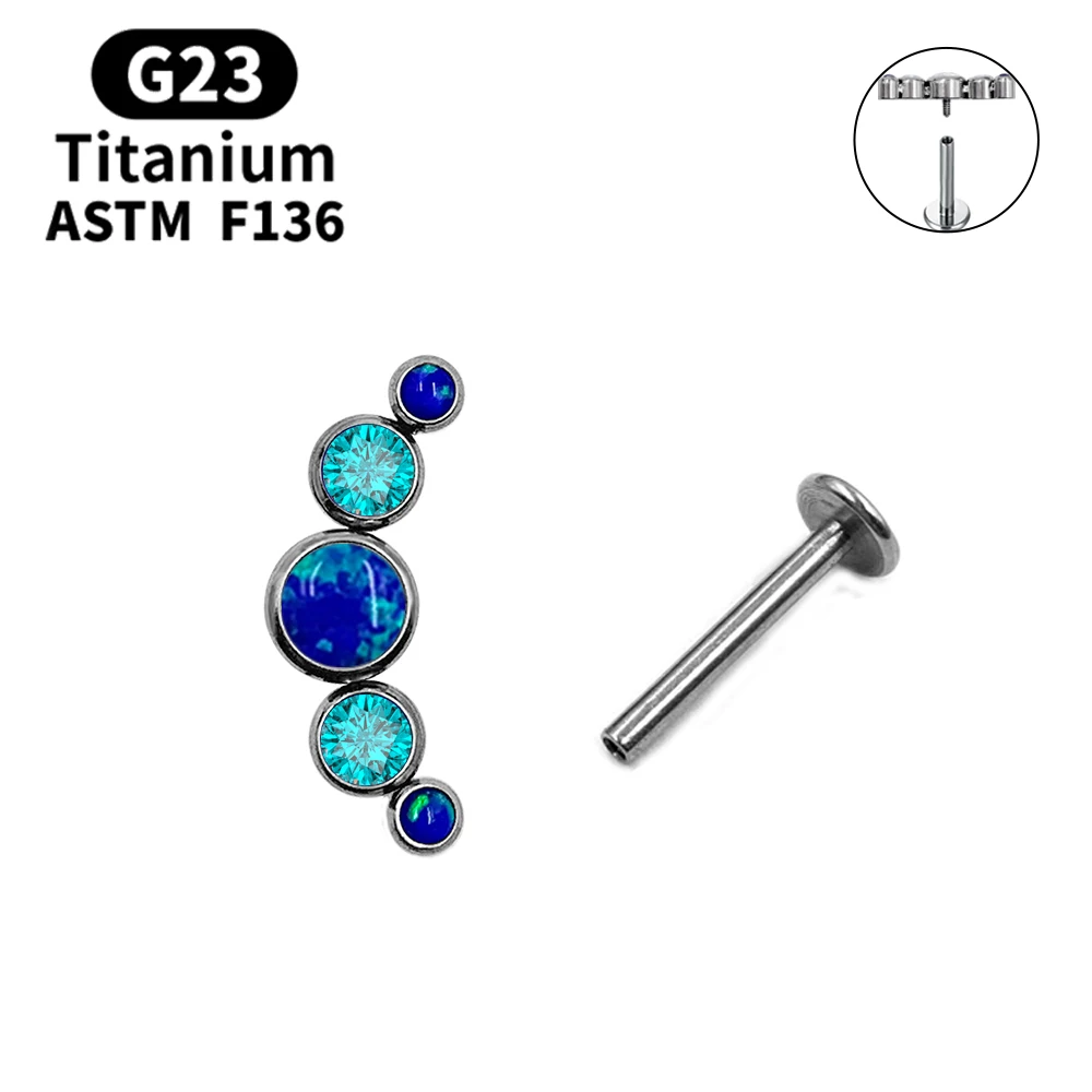 [product name]:Multicolor Sunshine Opal with Zircon Labret Spiral Stud Earrings Lip Stud Piercing