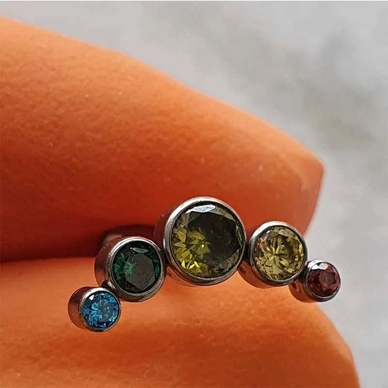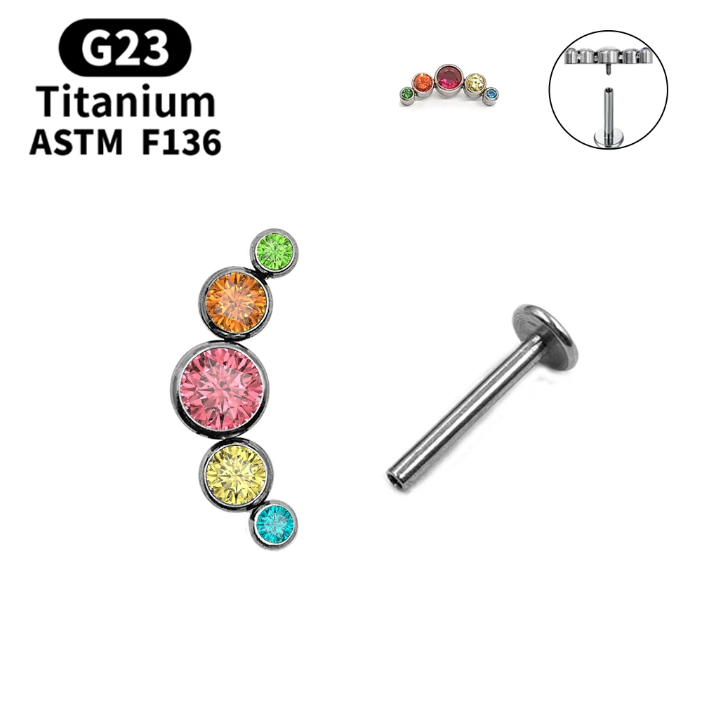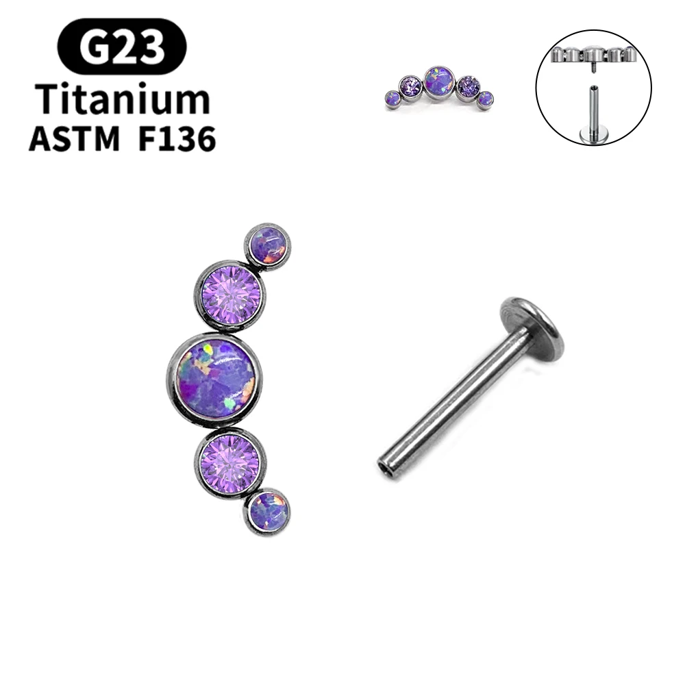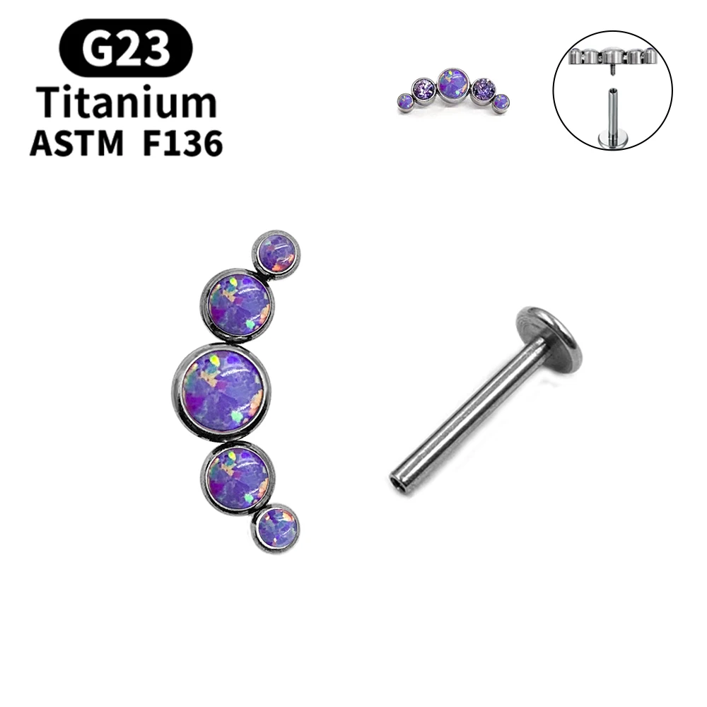 [product name]:Multicolor Sunshine Opal with Zircon Labret Spiral Stud Earrings Lip Stud Piercing