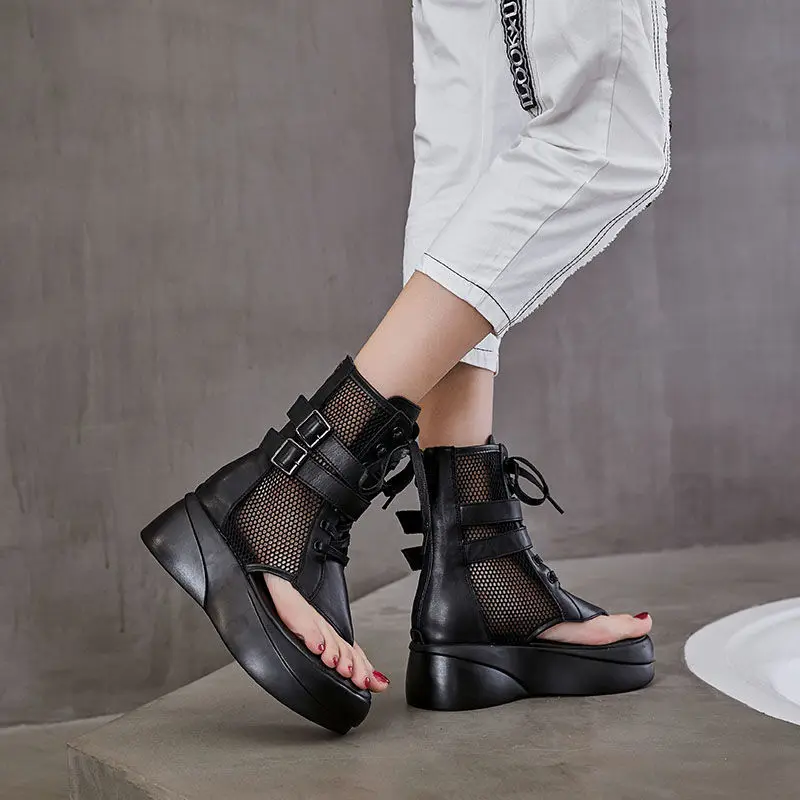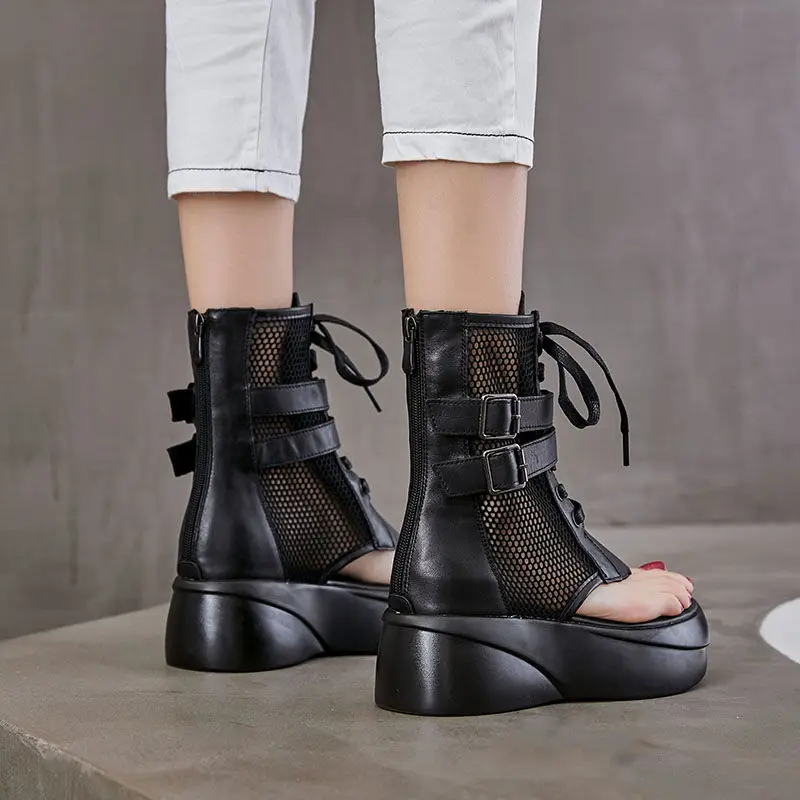 2021 Fashion Ladies Sandals Hollow-Out Gladiator Sandals Women Flat Shoes Open Toe Genuine Leather Summer Cool Boots