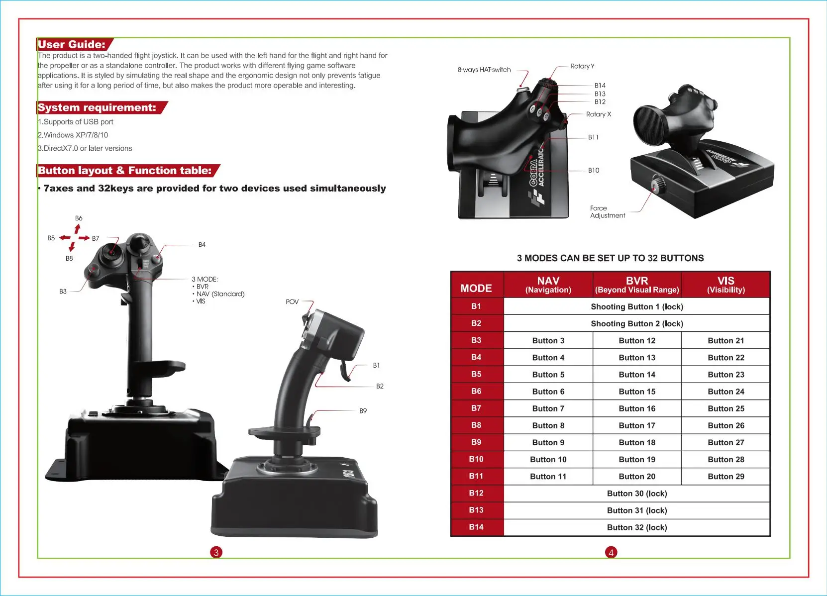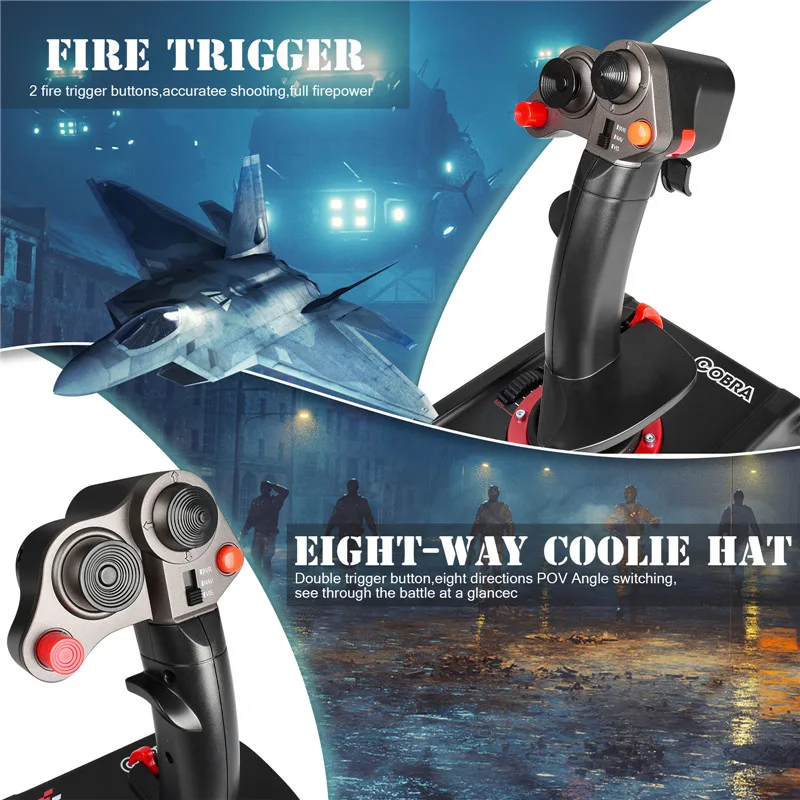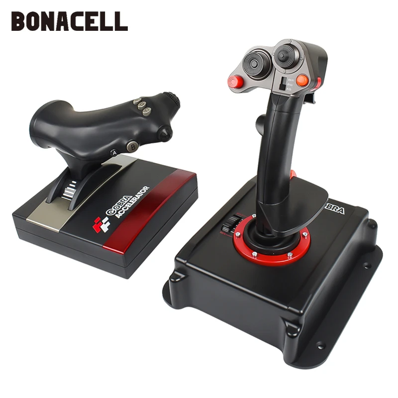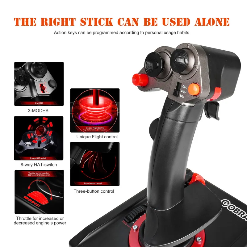 The product is a two- handed flight joystick. It can be used with the left hand for the flight and right hand for