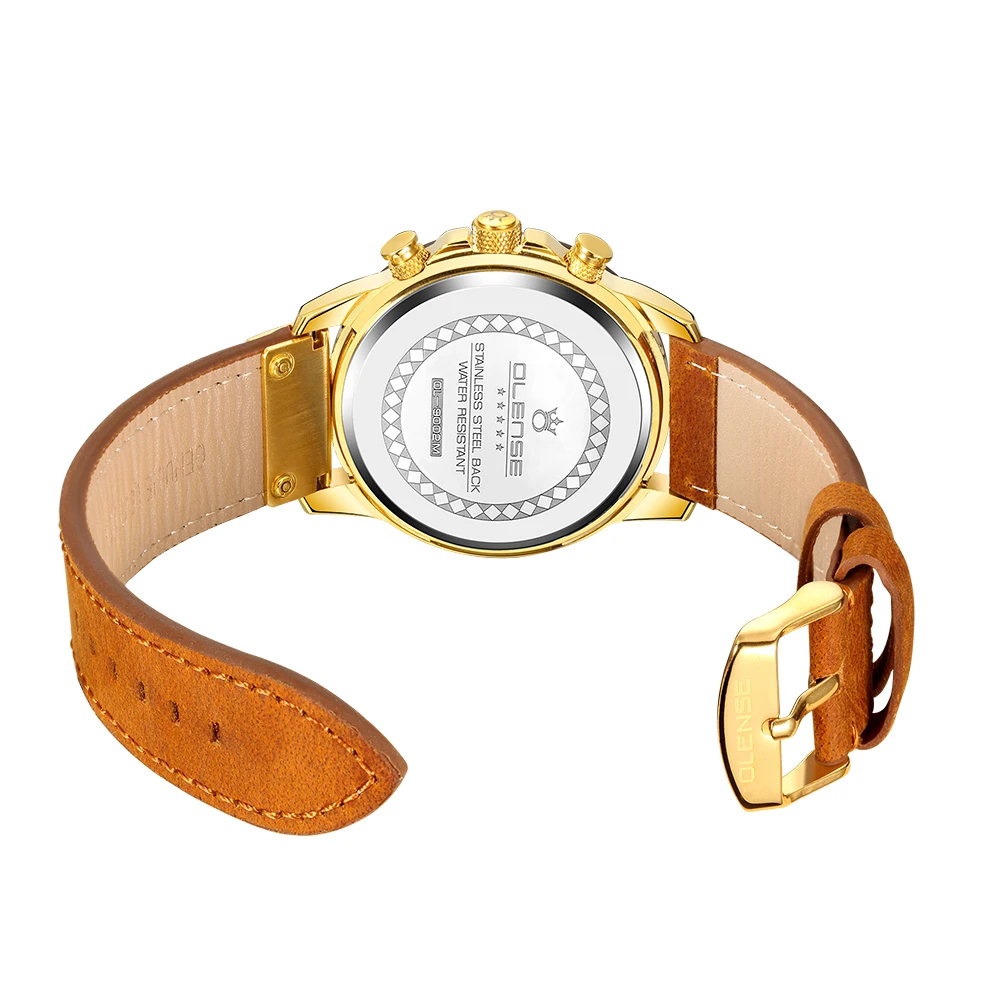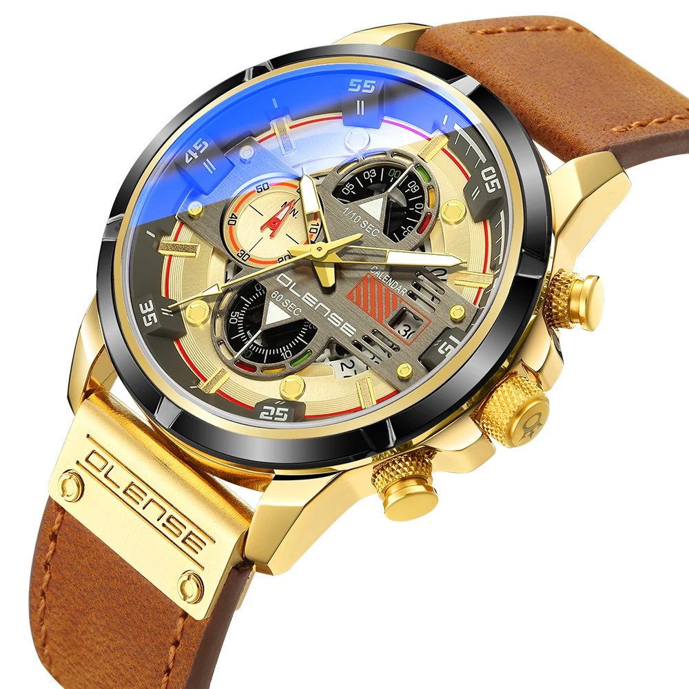 2021 Mens Genuine Leather Watches Blue Light Glass Multifunction Quartz Watch Military Waterproof Date Chronograph Clock