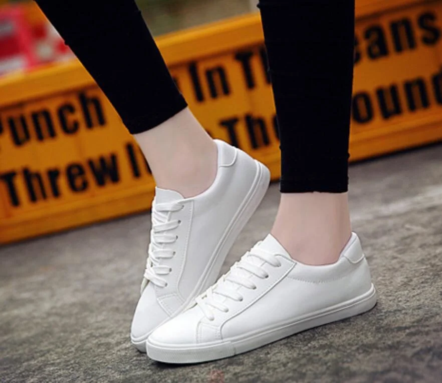 2021 new spring tenis feminino lace-up white shoes woman PU Leather solid color female shoes casual women shoes white sneakers
