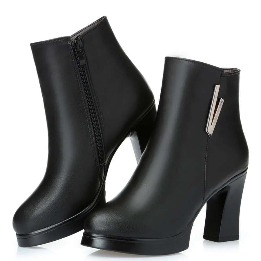 2021 new woman ankle boots ladies genuine leather snow boots high heeled fashion 34 red boots really winter Ding Shoes