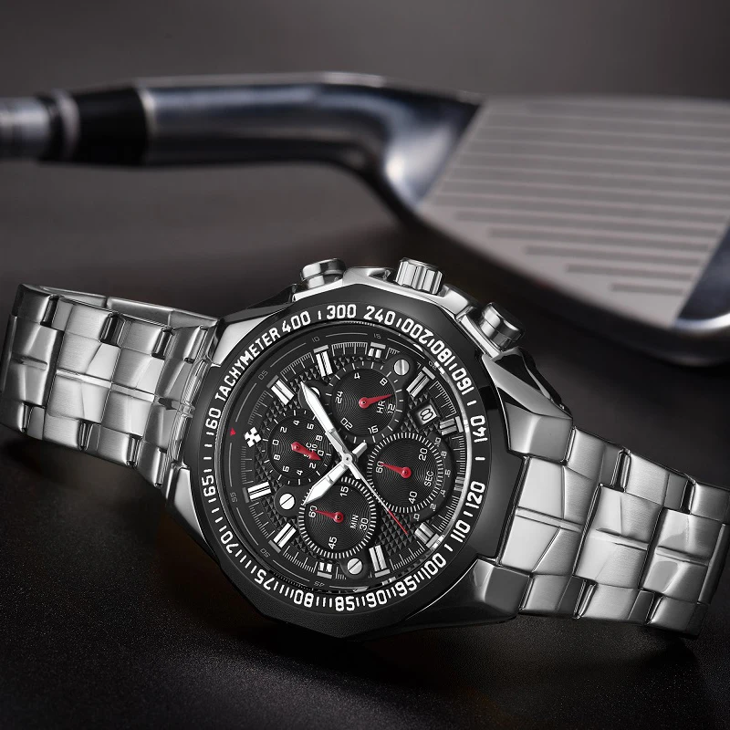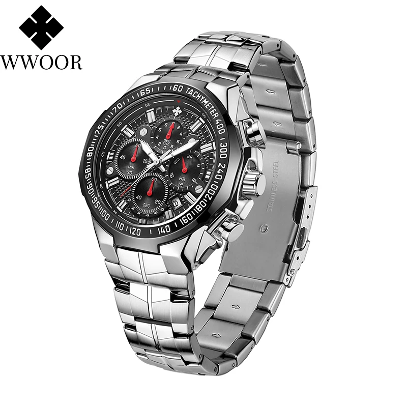 Sports Watches For Men Fashion Quartz Men Big Clock WWOOR Top Brand Luxury Military Full Steel Waterproof Chronograph Wristwatch