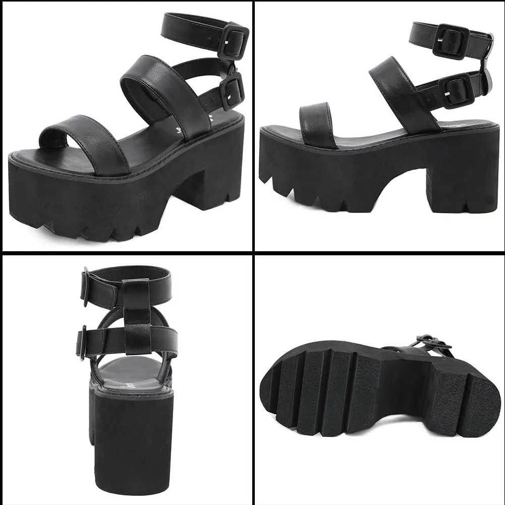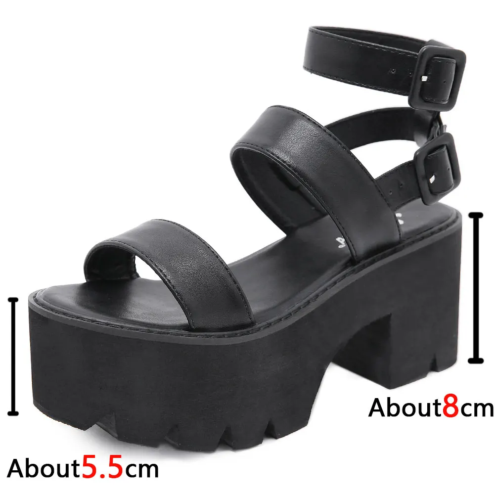 2022 Brand Leisure Chunky Platform Sandals High Block Heels Gladiator Goth Black Shoes Woman Fashion Trendy Summer Women Sandals