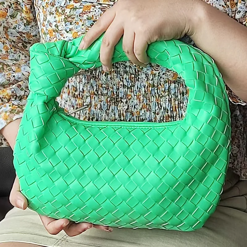 2022 Fashion Handmade Woven Bag Luxury Woven Leather Printed Shoulder Bag Lady Crossbody Hobo PU Knotted Handle Casual Handbag
