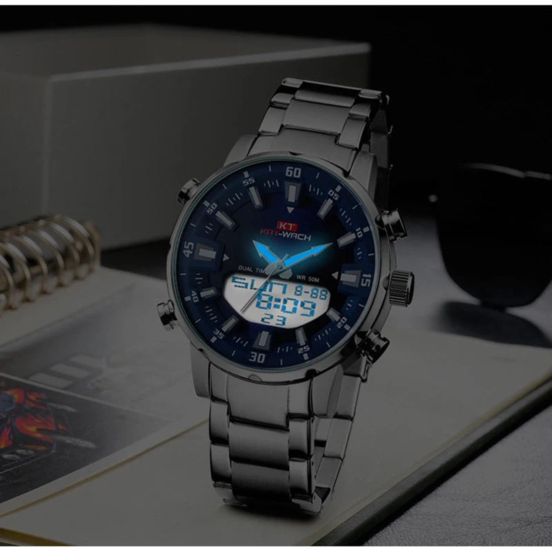 CURREN Sport Quartz Wrist Watch 2022 for Men Led Gold Multifunction Stainless Steel Wristwatches Dual Display Digital Clock Male