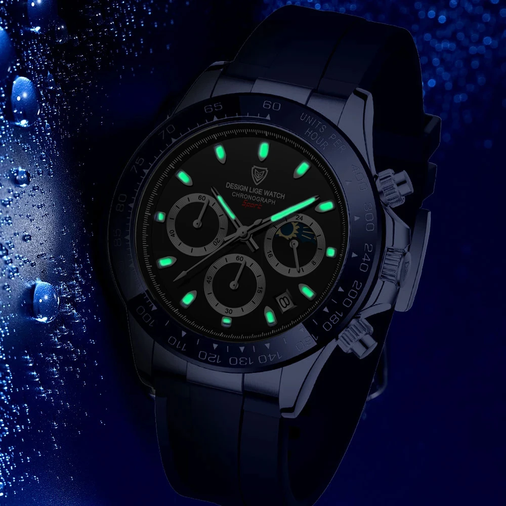- Function: Luminous, Waterproof,Moon Phase,Chronograph,Auto-Date