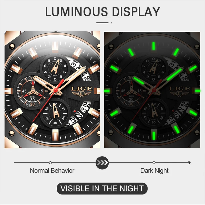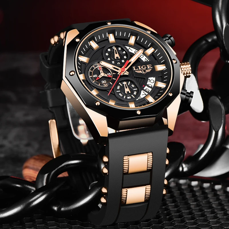 Luminous, waterproof, chronograph, calendar, large dial, silicone strap, fashion, casual