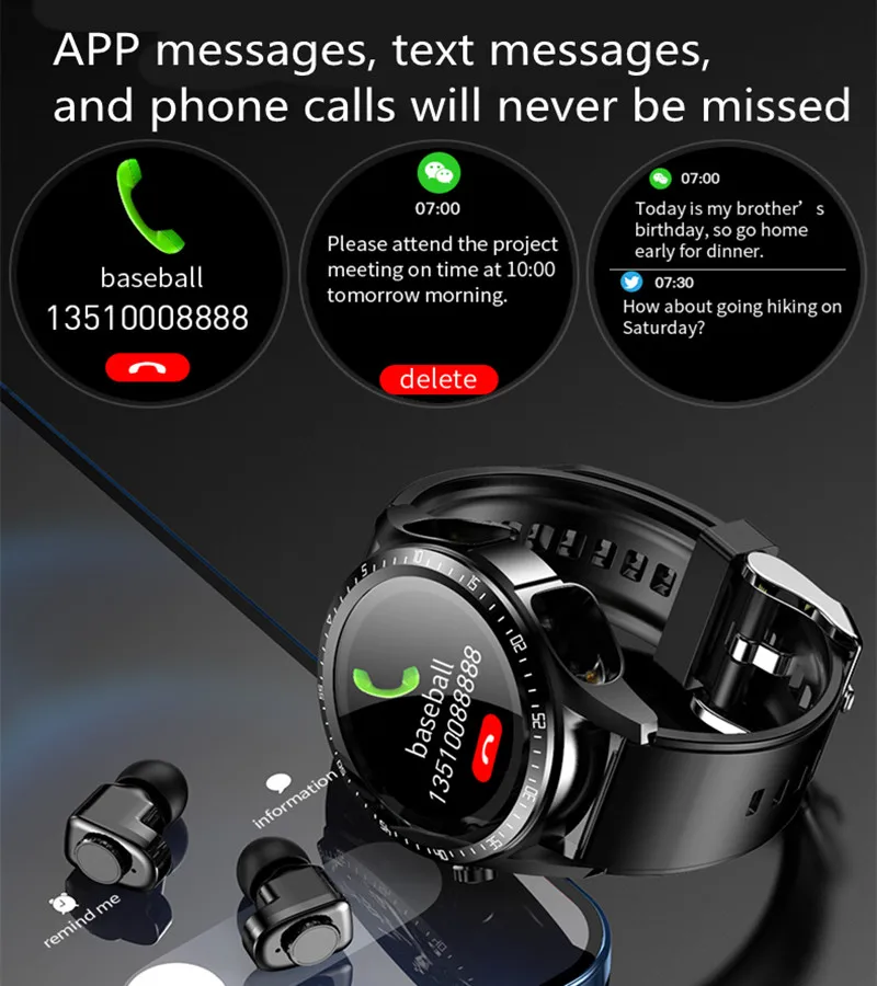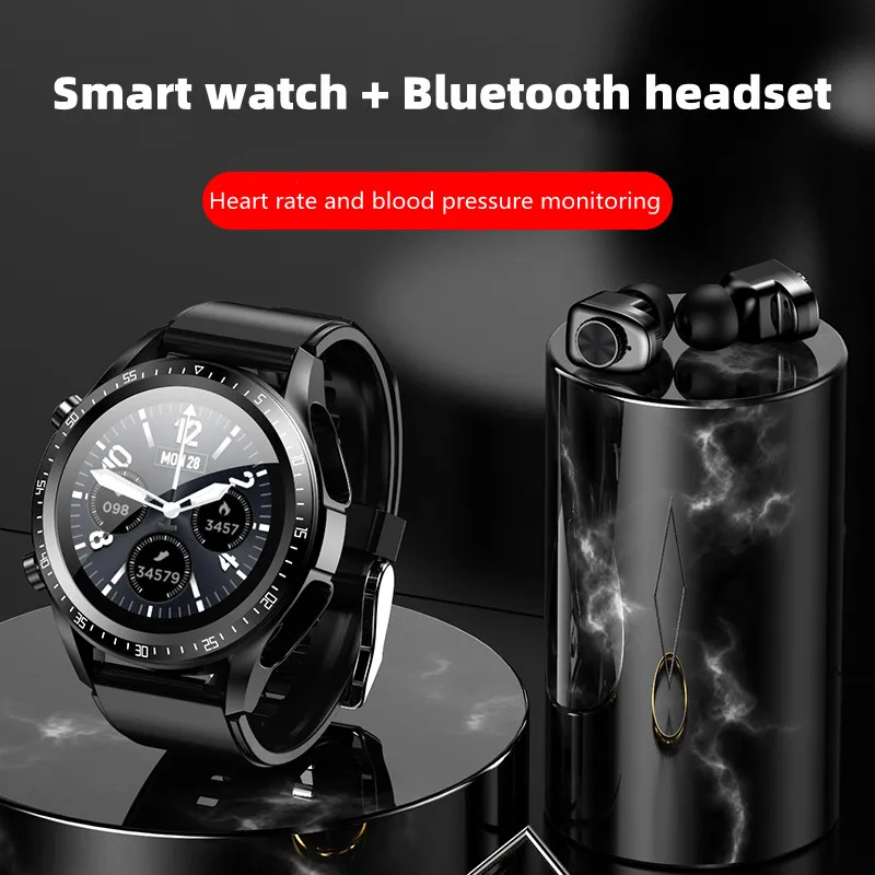 2022 Men's Smart Watch TWS Earphone 2-in-1 Bluetooth 5.0 Heart Rate Blood Pressure Monitor Sports Bracelet Women Fitness Tracker