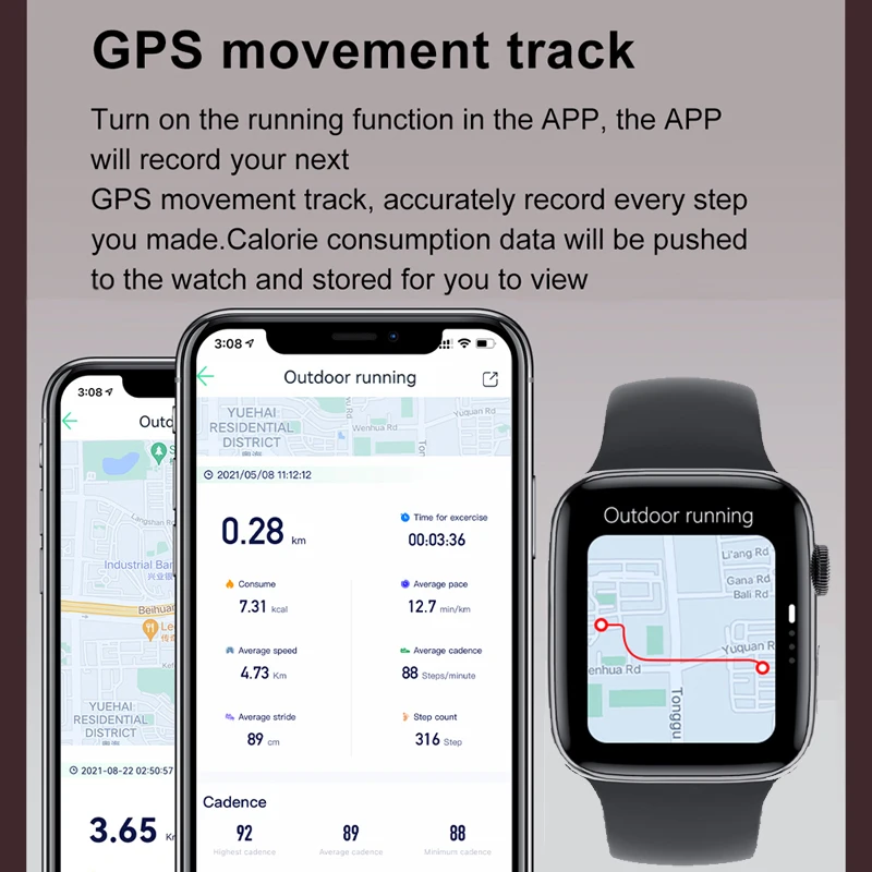 note: the watch don't have GPS, GPS Trajectory function need connect mobile phone APP.