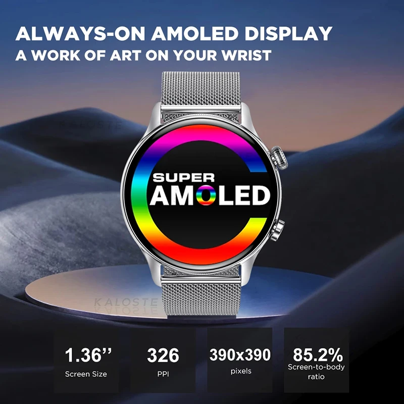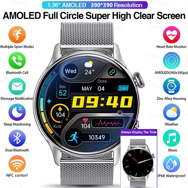 2022 New AMOLED Smartwatch Mens 1.36 inch Screen Support Always On Display Watches Waterproof Sports Fitness Tracker Smartwatch