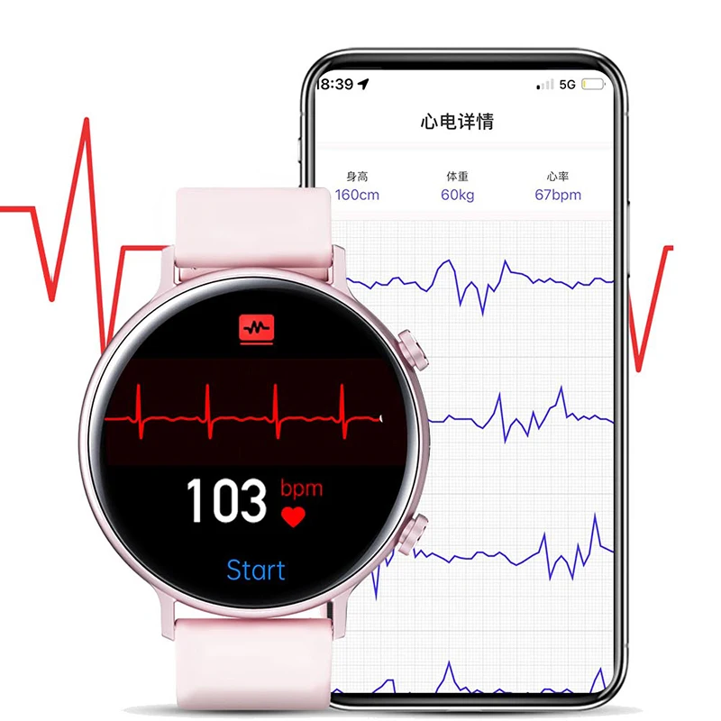 Main functions: multiple dial switching, multiple UI style switching, dial market, mobile phone APP message notification, call reminder, Bluetooth call, Bluetooth music control, heart rate monitoring, blood pressure / blood oxygen / ECG measurement, stress index, physiological cycle, meter Stepper, sleep monitoring, multiple sports modes, sedentary reminder