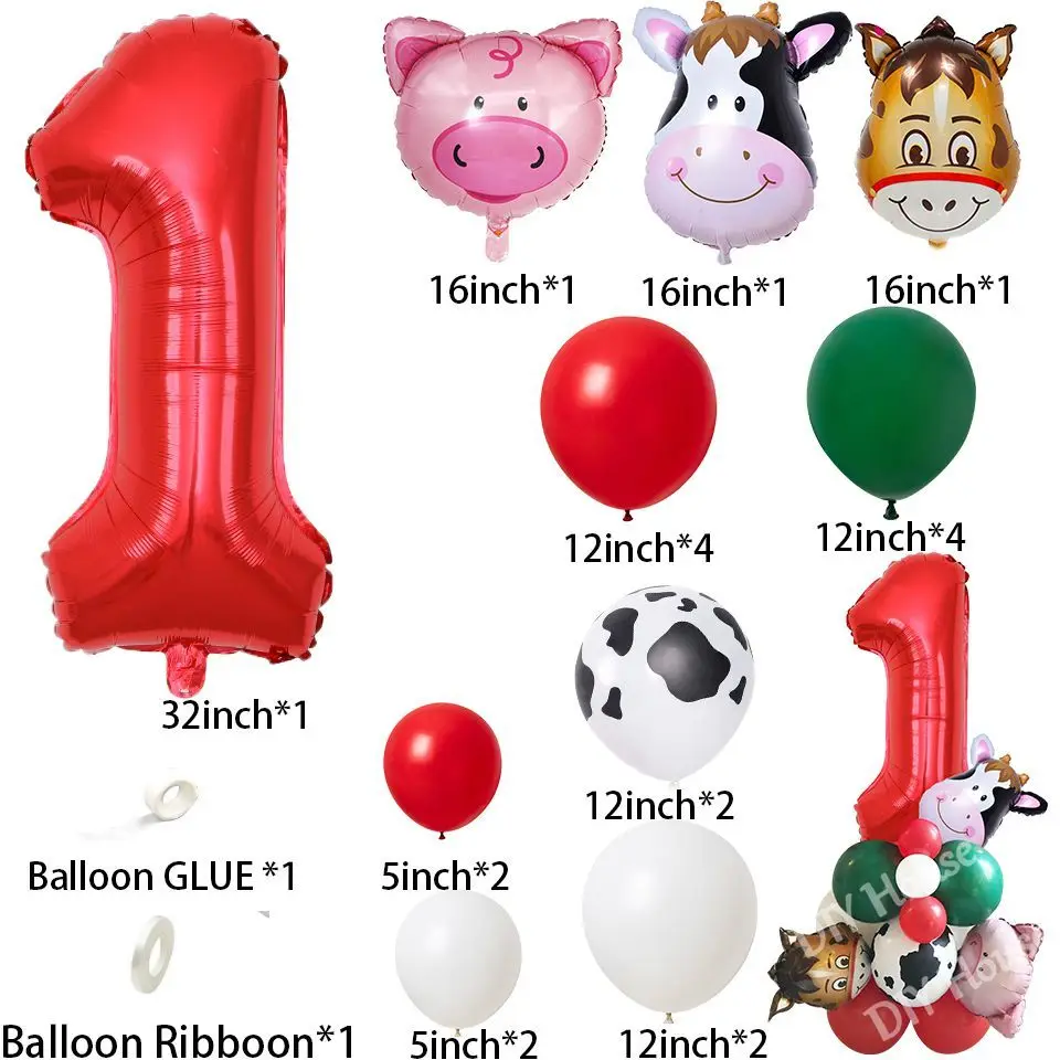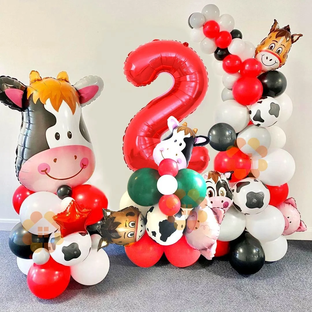 Farm Animal Cow/Pig Balloons Tower Set 1-9 32inch Figure Balloon Kids Happy Birthday Party Decoration Farm Party Supplies