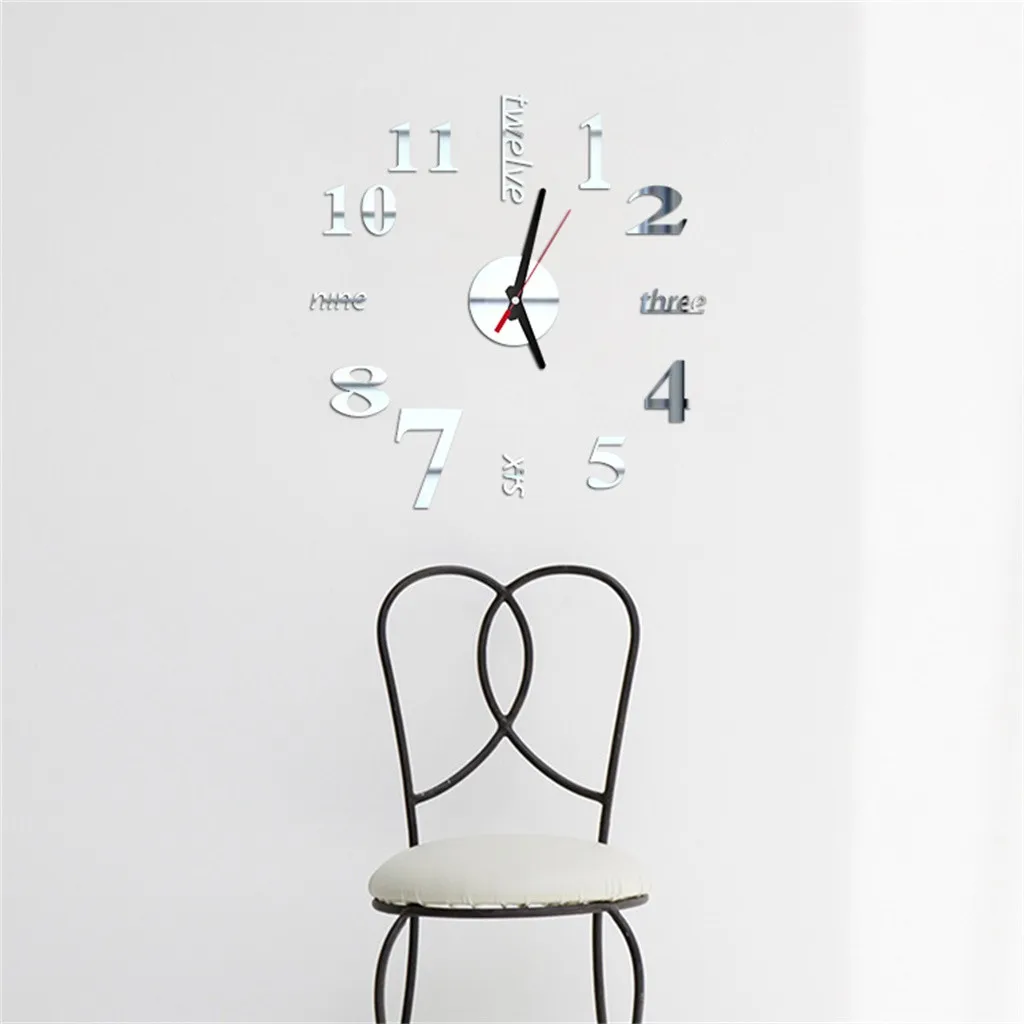 3D DIY Roman Numbers Acrylic Mirror Wall Sticker Clock Home Decor Mural Decals