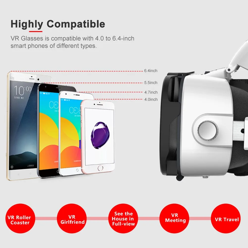 VR Headset Virtual Reality Headset 3D Glasses for smartphones Support 4.7-6.53 inch