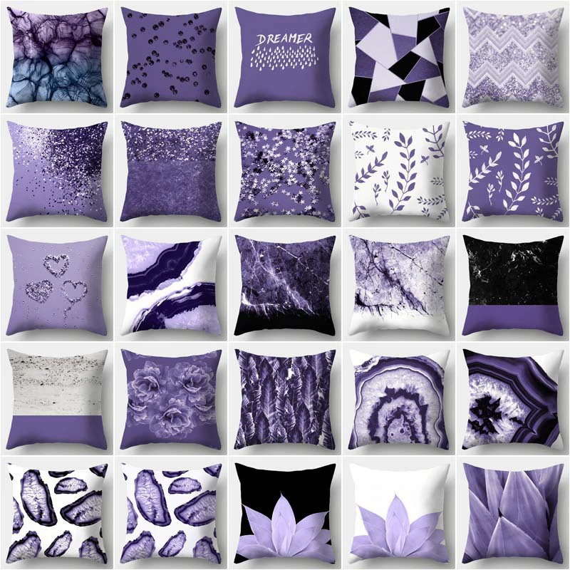 45x45cm Purple Geometric Print Pillow Covers Decorative Square Cushion Cover Polyester Throw Pillow Case for Home Sofa Decor