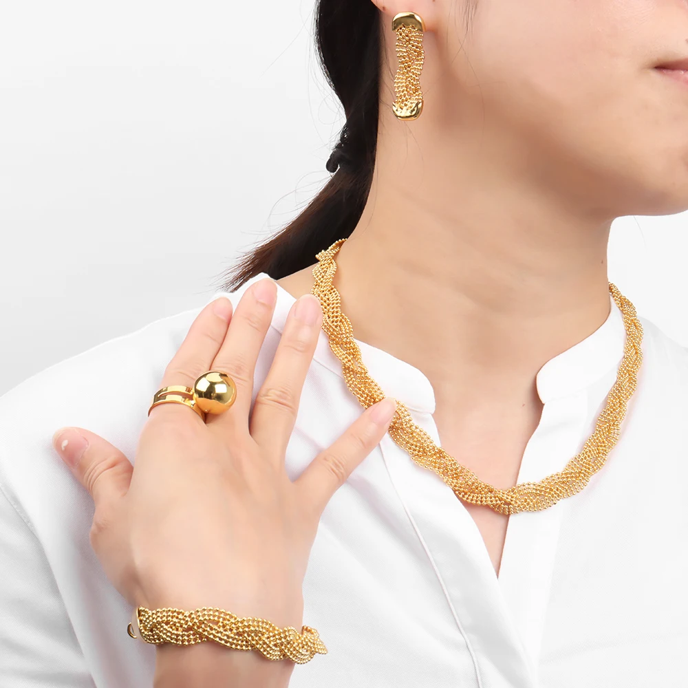 5 pcs Women Jewelry Set Golden African Jewelry Sets Luxury Dubai Jewelry Set Necklace Bracelet Earring Ring Set For Women