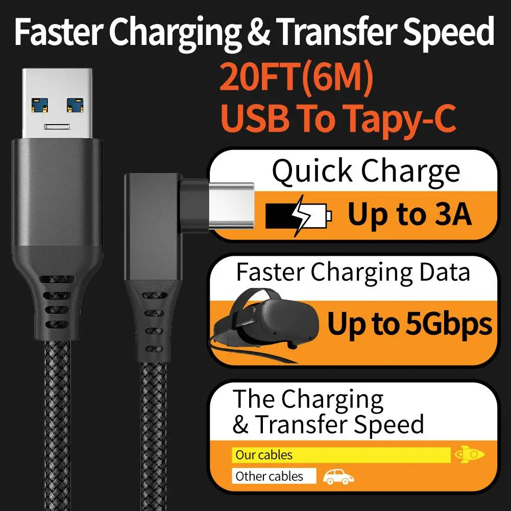2) Fashion design: suitable for Oculus Quest/ for Quest 2 VR, suitable for Oculus Quest link cable 16 feet (5M) heavy duty, high-speed data transmission and fast charging USB 3.0 Type C to USB Type A.