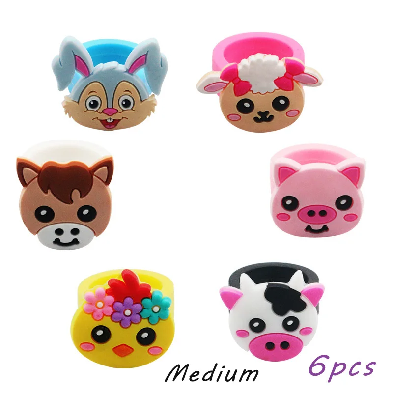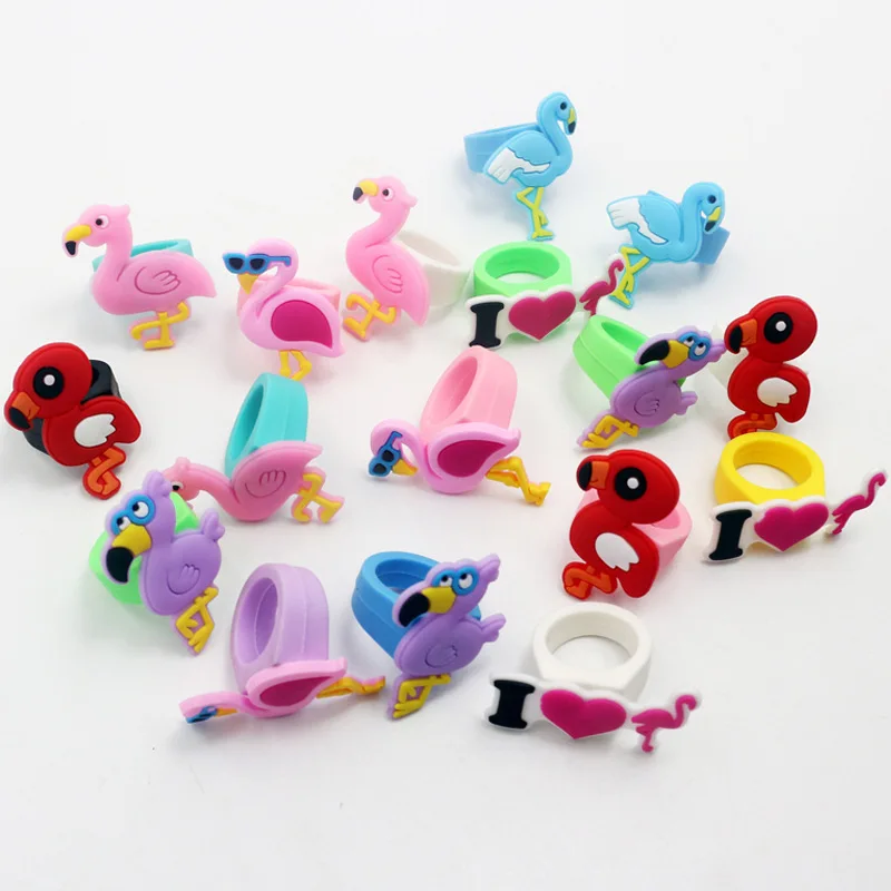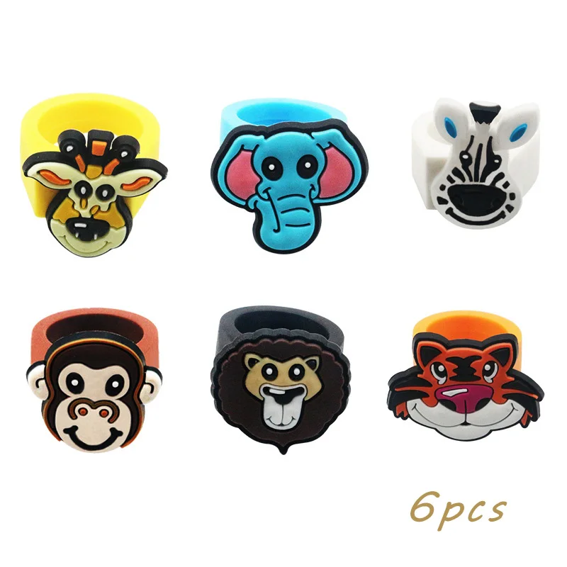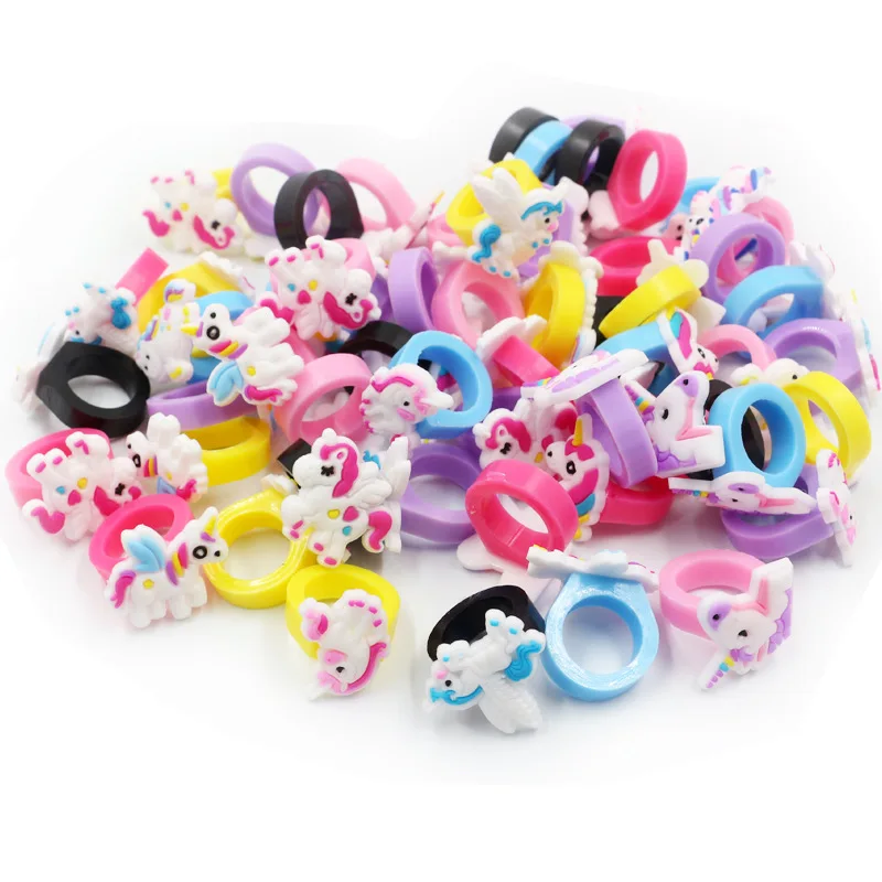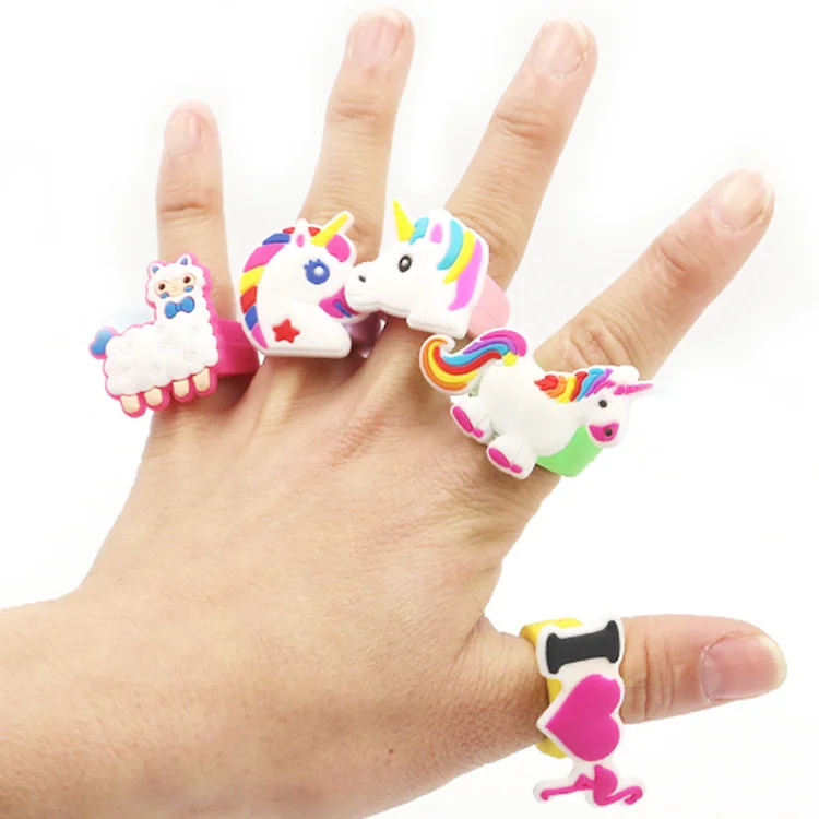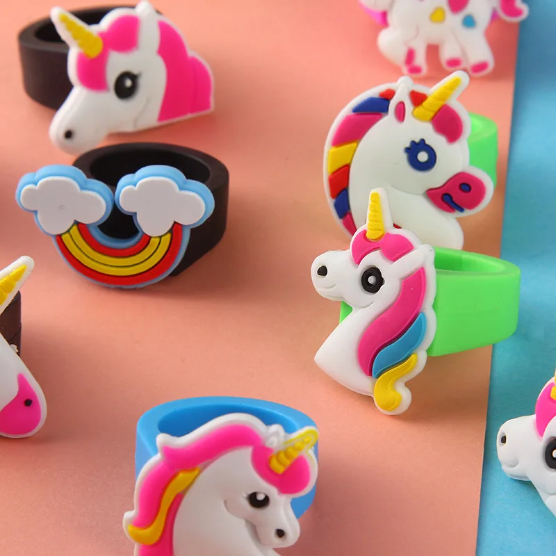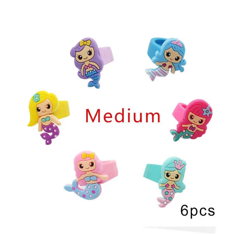 6pcs 10pcs Environmental Unicorn Mermaid dinosaur Ring Girl boy chindren PVC Silicone Ring Handmade Children's Cartoon Ring