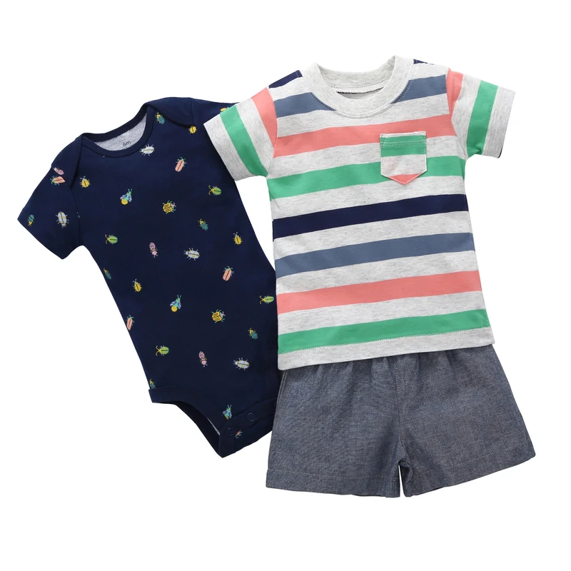 long sleeve bodysuit stripe+romper+pant clothes set for baby boy 2019 new born girl outfit newborn summer clothing babies suit